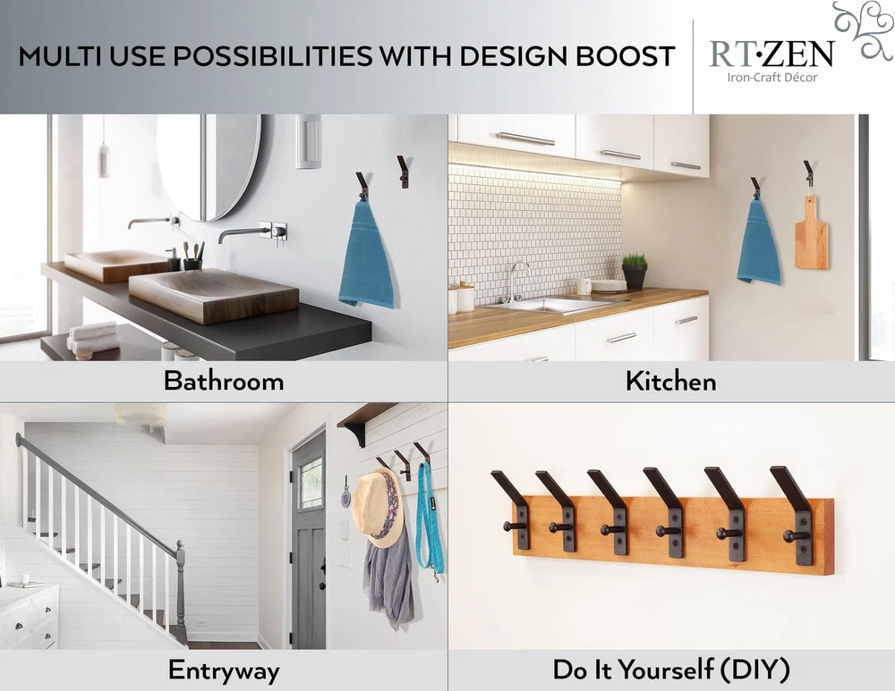 EXCLUSIVE LIFETIME PEACE OF MIND WROUGHT IRON WALL HOOKS - DIY Decorative 2 Peg Organizer Wall Mounted Coat Hooks, Heavy Duty, Waterproof, Sturdy & Strong 3 Pack Wall Coat Rack with Hooks for Home or Office HANDMADE MULTIPURPOSE BLACK HOOKS - Entryway Coat Hooks for Wall. Wall Hanger also for Keys, Purse, Dog Leash, Bag, Backpack, Handbag, Caps, Shirt, Mugs, Umbrella, Scarf, Robe, Apron, Cloth & Clothing UNIQUE WALL MOUNTED VERTICAL STORAGE DECORATION BAR - Do it Yourself Wall Mounted Coat Rack for Creative Decorating Organization. Hand Forged Wall Coat Rack also as Door Hooks. Stylish Wall Hooks for Coats CLASSIC FARMHOUSE HOOKS - Decorative Hooks for Kitchen, Bathroom, Toilet, Bedroom & Living Room. Hook Rack For Rustic Modern Wall Decor Aesthetic Vintage or Antique Country Design. A Great Gift Idea! EASY TO INSTALL WALL MOUNT COAT RACK WITH MOUNTING HARDWARE - Black Rod Clothes Hooks Wall Mount with Screws Included. Simple Set Up Coat HookS. Multi Purpose Utility Coat Rack Wall Mount Pegs