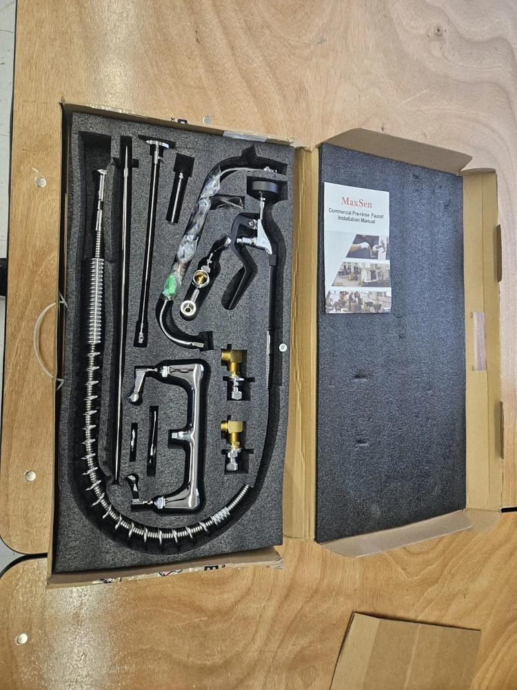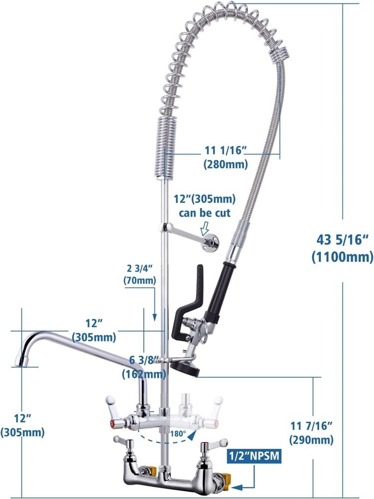 Has some water stains and some marks* 8 Inch center commercial faucet with pull down sprayer. This faucet features a 5-layers chrome plated casting brass construction that looks great in any setting and is easy to keep clean.It is the smart choice to install the faucet on a 2 or 3 utility compartment sink of your restaurant kitchen. Multi-functional commercial sink faucet with sprayer meets every need.