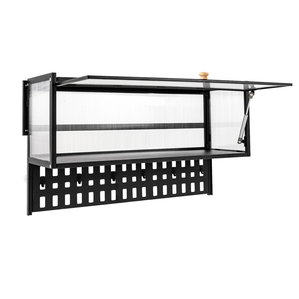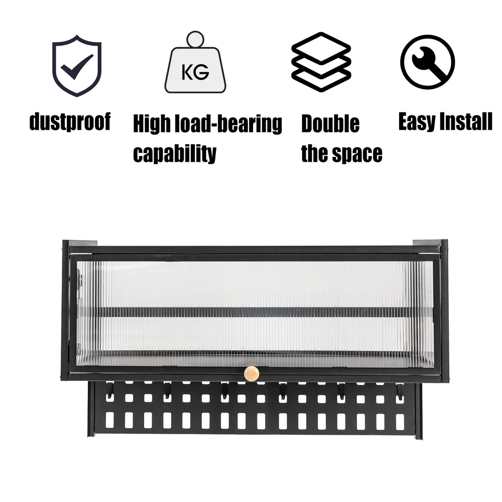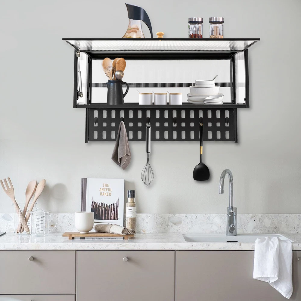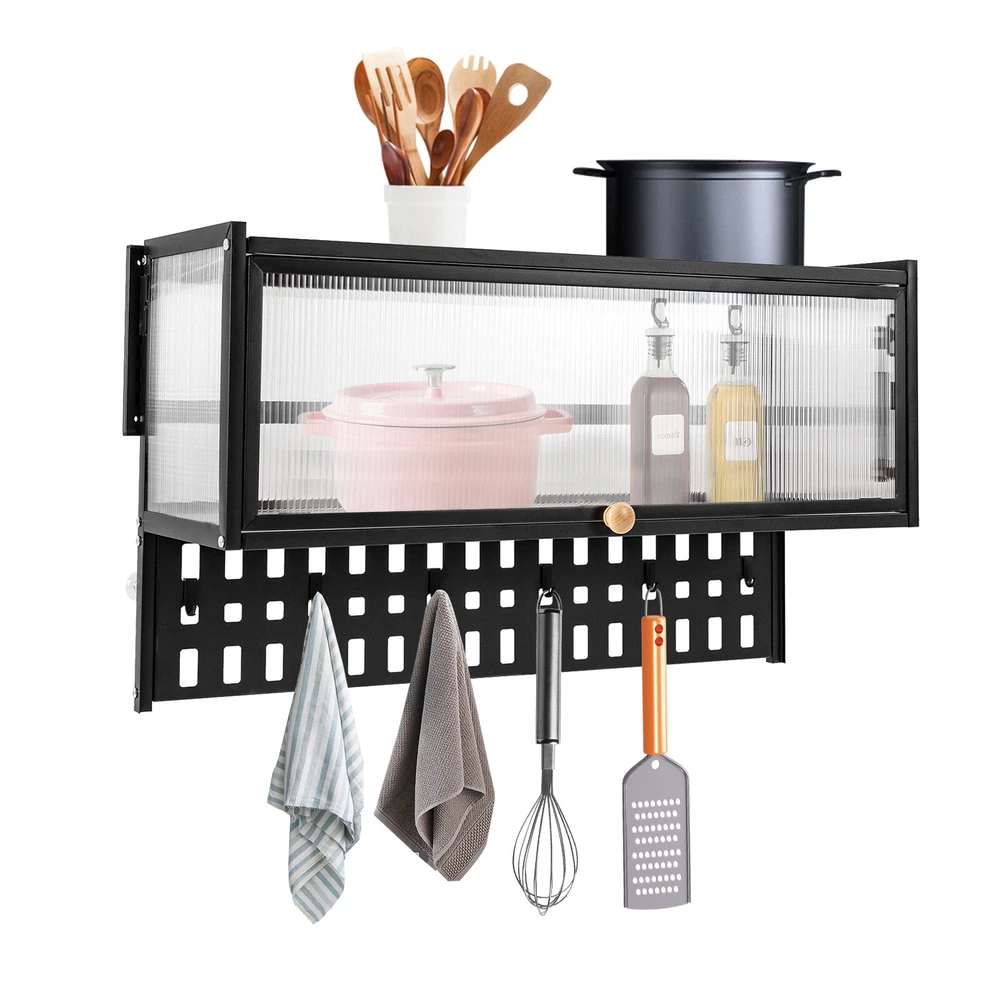Specification Material: Carbon Steel, Polycarbonate Hollow Sheet, Wood Surface Treatment: Painting Color: Black, Translucent Special Feature: Flip-up Load Capacity: 25kg/55lbs Hanging Board Load Capacity: 5kg/11 lbs Product Size: 85*28*30cm/33.5*11*11.8in Hanging Board Size(L*W): 85*8cm/33.5*3.1in Package Included 1x Wall-mounted Cabinet 1x Hanging Board 5x Hooks 1x Chinese&English Installation Diagram All Accessories for Assembly Notes: For firmness and safety, hollow walls, gypsum walls, and other walls that cannot withstand gravity cannot be installed with the wall cabinet. Please allow the slight color difference caused by the shooting light and the 1-3 cm error due to manual measurement, and make sure you do not mind before ordering. Wall-mounted Cabinet Kitchen Flip-Up Door Cabinet Shelf Storage Organizer 55lbs Description~~ Wall Cabinet Balcony Kitchen Wall Cabinet Living Room Bedroom Storage Cabinet Flip-Up Door Wall Cabinet Wall-mounted Locker ( Color : Black , Size : 85*28cm ) Description This wall cabinet can make full use of space and become an ornament on the white wall. The minimalist shape design can enhance the style of the room, and the translucent strip cabinet door brings the overall value to a higher level. It is not only a cabinet, but also expresses your pursuit of exquisite life. Key Features High-quality Selection: The high-quality carbon steel and polycarbonate hollow panels, combined with coating technology, make this product resistant to rust and scratches, and suitable for long-term use. Wall-mount Design : The wall cabinet can make full use of wall space, especially suitable for small rooms and can be integrated with various occasions. You can install it at a suitable height for quick access to your items. Worry-free Installation : The equipped suction cups, auxiliary stickers, detailed English installation video, and glues, ensure a stable installation without damaging the wall. Flip-up Design : The hydraulic support rod allows the opening and closing angle to reach 90 ° , making it easier to take items, achieving silent closing and reducing the risk of hitting heads. Maximize Your Storage : Large capacity allows easy storage of kitchen spices, and the flat top can also be used to store items to save space. The hanging board with holes plus five hooks can be used to hang spoons, rags, etc. Hanging things is much neater than if they were scattered in a drawer. High Load-bearing Capacity: This cabinet not only looks good but also has a big load-bearing capacity of about 55lbs , so you can place items as you like without worrying about them collapsing. Beautiful Appearance: The unique textured cabinet door plus the wooden handle demonstrate a unique texture. Meanwhile, the semi-transparent visual effect presents a hazy aesthetic of storage. Easy to Clean : The cabinet door can play a dustproof and antifouling role while the smooth surface of the product also enables easy and fast cleaning, and you only need to wipe away the stains with a towel. Details Solid Back Plate : Enlarged and thickened back plate provides stronger support, so you can use this item with peace of mind. Rounded Edges : The edges of this product have been polished smooth to avoid damage caused by bumping, making it safe and comfortable. Application This wall cabinet is an all-around item and is suitable for the kitchen, living room, office, etc. Specification Material: Carbon Steel, Polycarbonate Hollow Sheet, Wood Surface Treatment: Painting Color: Black, Translucent Special Feature: Flip-up Load Capacity: 25kg/55lbs Hanging Board Load Capacity: 5kg/11 lbs Product Size: 85*28*30cm/33.5*11*11.8in Hanging Board Size(L*W): 85*8cm/33.5*3.1in Package Included 1x Wall-mounted Cabinet 1x Hanging Board 5x Hooks 1x Chinese&English Installation Diagram All Accessories for Assembly Notes: For firmness and safety, hollow walls, gypsum walls, and other walls that cannot withstand gravity cannot be installed with the wall cabinet. Please allow the slight color difference caused by the shooting light an d the 1-3 cm error due to manual measurement, and make sure you do not mind before ordering. tu 2 Payment Delivery details Terms of sales About us Contact us Payment We accept ebay payment 。 Fees such as import duties, taxes are not included in the item price or shipping costs. These charges are the buyer's responsibility. Delivery details Shipping: 2-9 working days to: USA Terms of sales We maintain high standards of excellence and strive for hundred percent customer satisfaction. Feedback is very important to us. We hope that you contact us immediately before you give neutral or negative feedback, so that we can address your concerns. It is impossible to address issues if we do not know about them! About us Your satis faction is our ultimate goal. We work hard to earn your trust and future business. Our certified technicians have tested each item before shipping. The unit comes with 1 year limited warranty on all manufacturing defects. a) If you receive a defective item, you may return it or ask for a discount. Please contact us within 14 days after you receive the package. b) What you returned must be intact and in its original packaging as re? u. Customer is responsible for shipping costs of the returned item. c) We will cover the cost of shipping back t with the shipping rate indicated in the registration page. We will send you a new unit or refund the full payment you paid. Thank you. Contact us Business Hour Business Hour: Monday To Friday: 8:30 AM to 5:00 PM (Beijing China time) Due to time zones, our reply to your questions may not be immediately. But within above working time, we will reply your email within 24 hours. If it's non-workdays, please kindly be patient and wait till Monday. Please contact us with ebay message. Please feel free to contact us if you have any questions. Monday To Friday: 8:30 AM to 5:00 PM (Beijing China time) Due to time zones, our reply to your questions may not be