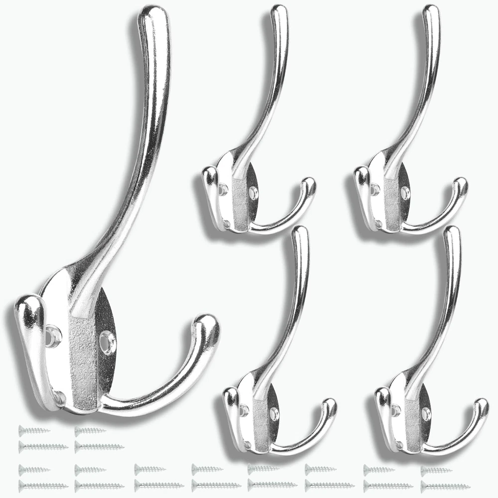 Wall Mounted Coat Hooks: Package includes: 5 pcs wall mounted black hooks 10 x long screws 10 x short screws Specifications: Material: Zinc alloy Withstand weight: 35 lbs Solid zinc alloy material