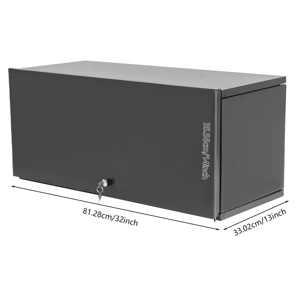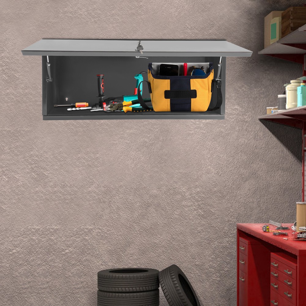 Specifications Color: Black, Silver Style: Modern Shape: Rectangular Material: Carbon Steel Process: Spray Molding Installation Required: Yes Mounting Type: Wall Mounted Indoor/Outdoor Usage: Indoor Opening Angle: 90° Overall Load-bearing Capacity: 58.97kg/130 lbs Number of Keys: 2 Gross Weight: 12.5kg/27.56lbs Net Weight: 11kg/24.25lbs Product Size: 81.28*33.02*35.56 cm/32*13*14in Package Size: 80*35*8cm/31.5*13.78*3.15in Package Included 1* Storage Cabinet 2* Keys Wall Mounted Metal Storage Cabinet Garage Wall Cabinet Metal Cupboards with Lock Description Are you still worried about not having good cabinets for storing things in your garage? Let's take a look at this storage cabinet. The high-class material and exquisite craftsmanship make it sturdy and durable. Large capacity and lockable design meet your daily needs and privacy needs. With its generous appearance, it can easily blend into various places. Such a practical household item, bring it home quickly! Key Features Build to Last: Made of carbon steel with a spray molding process, this product is impact-resistant , rust-resistant , and durable, ensuring your long-term use. Storage Assistant: It can be used to store various light or heavy items. In addition, the top of the cabinet can also be used to place items, creating a neat and orderly storage space. Privacy Protection: The equipped lock can effectively protect your precious personal belongings. And the equipped 2 keys allow you to use it as a spare . Strong Load-bearing Capacity: The high-class material and sturdy structure make this product capable of bearing a total weight of 130 lbs , allowing you to use it with confidence. Wall-mounted Design: The wall-mounted design allows you to install this product on the wall, making full use of the wall space without occupying any floor space. Easy to Use: You can easily open or close the cabinet door with just a flick of your hand, making it very easy to use. Easy to Clean: Because of the smooth surface and simple structure, you can wipe the dirt from it with a wet cloth(not included). Ideal Gift: With its beautiful appearance and practical performance, it is the ideal surprise for workers and friends who need to store things in the garage. Buy with Confidence: We stand behind all our guests and look forward to assisting you with your purchase. It is our pleasure to answer your confusion and questions. The end of the story between us is not "we sell and you buy". Details Practical Cabinet Door: The up-flip door can open 90 degrees which can effectively reduce the risk of banging your head into the cabinet door, and a hydraulic rod ensures a smooth opening and closing. Smooth Edge: The rounded and smooth edges not only add to the aesthetics of the product but also improve the safety of use. Application It is suitable for garages, kitchens, living rooms, art studios, schools, pantries, workspaces, etc. It can be used to store tools and items in the warehouse or garage. Specifications Color: Black, Silver Style: Modern Shape: Rectangular Material: Carbon Steel Process: Spray Molding Installation Required: Yes Mounting Type: Wall Mounted Indoor/Outdoor Usage: Indoor Opening Angle: 90° Overall Load-bearing Capacity: 58.97kg/130 lbs Number of Keys: 2 Gross Weight: 12.5kg/27.56lbs Net Weight: 11kg/24.25lbs Product Size: 81.28*33.02*35.56 cm/32* 13*14in Package Size: 80 * 35 * 8cm/31.5*13.78*3.15in Package Included 1* Storage Cabinet 2* Keys Notes Please double-check the size before ordering. Please use this product within the load-bearing range. Please allow the slight color difference caused by the shooting light and 1-3cm error due to manual measurement, and make sure you do not mind before you order. Payment Delivery details Terms of sales About us Contact us Payment We accept ebay payment 。 Fees such as import duties, taxes are not included in the item price or shipping costs. These charges are the buyer's responsibility. Delivery details Shipping: 2-9 working days to: USA Terms of sales We maintain high standards of excellence and strive for hundred percent customer satisfaction. Feedback is very important to us. We hope that you contact us immediately before you give neutral or negative feedback, so that we can address your concerns. It is impossible to address issues if we do not know about them! About us Your satis faction is our ultimate goal. We work hard to earn your trust and future business. Our certified technicians have tested each item before shipping. The unit comes with 1 year limited warranty on all manufacturing defects. a) If you receive a defective item, you may return it or ask for a discount. Please contact us within 14 days after you receive the package. b) What you returned must be intact and in its original packaging as re? u. Customer is responsible for shipping costs of the returned item. c) We will cover the cost of shipping back t with the shipping rate indicated in the registration page. We will send you a new unit or refund the full payment you paid. Thank you. Contact us Business Hour Business Hour: Monday To Friday: 8:30 AM to 5:00 PM (Beijing China time) Due to time zones, our reply to your questions may not be immediately. But within above working time, we will reply your email within 24 hours. If it's non-workdays, please kindly be patient and wait till Monday. Please contact us with ebay message. Please feel free to contact us if you have any questions. Monday To Friday: 8:30 AM to 5:00 PM (Beijing China time) Due to time zones, our reply to your questions may not be immediately. But within above working time, we will reply your email within 24 hours. If it's non-workdays, please kindly be patient and wait till Monday. Please contact us with ebay message. Please feel free to contact us if you have any questions. On Jul 30, 2025 at 23:01:04 PDT, seller added the following information: