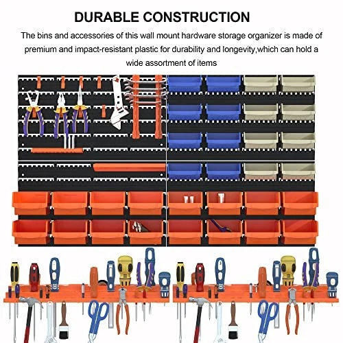 Menu 1. We require immediate payment. 2. We currently accept payment via eBay managed payments only. 3. Once payment is cleared, we will dispatch your shipment within 1-3 business days. Please refer to the "Shipping" tab for more information regarding shipping speed to your destination. 52PCS Wall Mounted Storage Bins Garage Storage Drawers with 4PCS Wall Mounting Peg Boards Workshop Parts Rack Container Tool Organizer Easy Access Compartments for Hardware Crafts Office Supplies Product description 【Multifunctional Storage Bins】52-piece storage drawers (Overall Dimensions:37.4" X 21.4"),including 16 large orange bins(6.3"x4.1"x2.9"),16 small bins(3.9"x3.9"x1.96"),2 extra hanging tool trays(19.1"x8.3"x1.9"),4 mounting black boards (18.7"x 10.7") and 14 tool storage accessories,which is spacious enough to store and organize tool accessories and small parts from hardware,screws,nuts,bolts,washers,nails,office supplies,to decorative materials of DIY projects,like beads,buttons,clips,jewelry 【Durable Construction】The bins and accessories of this wall mount hardware storage organizer is made of premium and impact-resistant plastic for durability and longevity,which can hold a wide assortment of items.4 high quality ABS back peg panels are equipped with upgraded mounting slot design for extra stability,make the removable bins snap on the rails easily!You can conveniently mount this garage tool organizer on your wall for easy access and saves you from the mess on your floor otherwise 【Wall Mounted Storage Bins】The bins and tool holding accessories can be removed and re-attached as per need.This time-saving feature makes it easy to arrange the items without actually having to remove them from the bins,as all it needs to be done is exchanging the position of the bins!Storage bins are color coded for easy organization of parts and tools.Stackable design allow you to stack the drawers or put them aside to save space,and even ease your cleaning process when not in use 【Easy Access Compartments】This wall mounted storage rack is a convenient space saving option for your workspace.The lid-free,open design makes it easy to see what’s inside each compartment and also keeps your parts and hardware readily accessible.You can keep your small parts all well-organized in a fixed compartment and find whatever you want to instantly!It is the perfect storage solution for organizing your work bench,workshop,shop,craft room,basement,garage,tool shed,home,schools,etc 【Perfect organizational solution】This wall-mount Parts rack container is an excellent organizational option for any auto-enthusiast,garage owner,workshop owner,etc,as it can help them to keep their hand tools as well as other essential gadgets neatly stored and tidy!Extra tool hooks can hold multiple accessories and other tiny parts required for repair and maintenance,such as pliers,screwdrivers,hammers,tape measure,fishing tackle and other small parts of the home improvement projects! PLEASE MESSAGE US IF YOU HAVE ANY OTHER QUESTIONS, AND MANY THANKS FOR READING ALL OF THIS. Copyright ©#. All Rights Reserved.