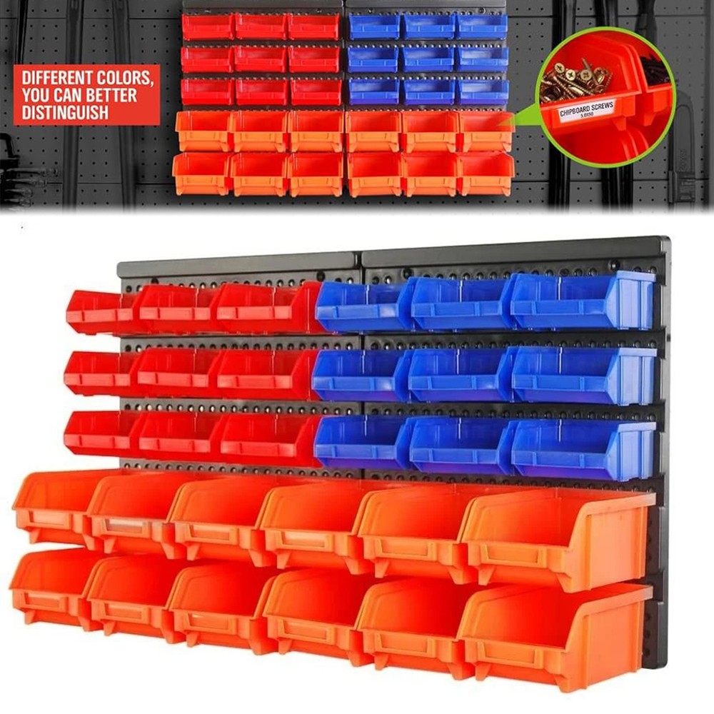 Features: Labelling Spot sticker or marker pen, Keep work area neat and tidy Structural Stability Heavy duty storage material,Upgraded mounting slot design for extra stability Ultra Durable Peg Board They are manufactured from high-quality base materials. 100% Brand new, The color is bright, completely different from the inferior product Great for the handyman.Ideal for mounting in garages and/or sheds.With removable. Bins which are conveniently and easily accessible Including: 9 small red bins(cm): 9.7 X 9.2 X 5 9 small blue bins(cm): 9.7 X 9.2 X 5 12 large orange bins(cm): 10.1 X 16.3 X 7 Overall Dimensions(cm): 64 X 38 X 18.5 Wall Mounted Storage Bins Small Parts Organizer Garage Tool Rack 30 Bins Features: Labelling Spot sticker or marker pen, Keep work area neat and tidy Structural Stability Heavy duty storage material,Upgraded mounting slot design for extra stability Ultra Durable Peg Board They are manufactured from high-quality base materials. 100% Brand new, The color is bright, completely different from the inferior product Great for the handyman.Ideal for mounting in garages and/or sheds.With removable. Bins which are conveniently and easily accessible Including: 9 small red bins(cm): 9.7 X 9.2 X 5 9 small blue bins(cm): 9.7 X 9.2 X 5 12 large orange bins(cm): 10.1 X 16.3 X 7 Overall Dimensions(cm): 64 X 38 X 18.5 Payment Shipping Return Contact us About us Payment 1.Paypal, Credit Card, G Pay etc, many payment way is accepted. 2.Please be sure your shipping address is correct before make a payment. Shipping 1.We are shipping from multiple warehouses (Houston, Texas/ Corona, California) , please note before placing an order 2.We will ship out the item within 1-3 business days after comfirming the payment, appreciate your patience. 3.If the items are broken on the way( we will check the orders clearly before we sent them ),please contact us in 3 days you received it. We will send you a new one or refund your payment. Return 1.We stand behind every buyer.Items can be returned for exchange or refund within 30 days. 2.Please contact us when you have any confusion of our item, we will solve the trouble for you as soon as possible. Contact us 1.This is professional Seller.We will reply your message within 24 hours. 2.Please contact us whenever you have any question about the item. We will deal with it as soon as possible. 3. If you are unhappy with the item or our service,please Contact Us before leave feedback,just give me a chance,thank you! About us 1. Unless specified otherwise, all our products are IN STOCK and are shipped from Local warehouse - Not Overseas! 2. We provide a 30 day Satisfaction Guarantee or your money back (provided items are in the same new and resaleable condition.) 3. We have a PayPal Verified Business Account, please buy with Confidence! 4. Every item will be tesrted before send.We know our products well and if we don't have the answers we will do our best to find them for you! 5. Our friendly team look forward to serving you! Your satisfaction is our No.1 Priority We will do our best to satisfacy you.