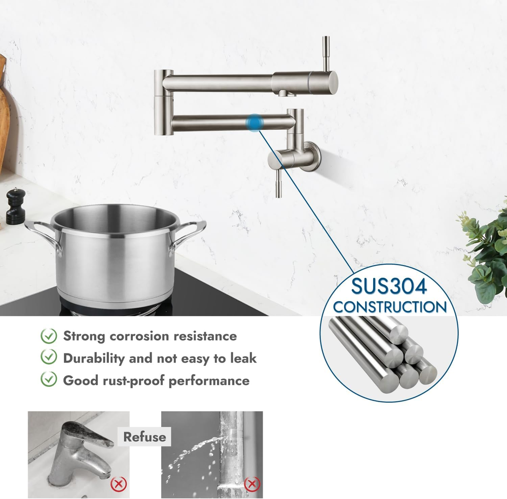 Deck Mounted Pot Filler Faucet with Hot and Cold Water Single Handle for Countertop Double Sink