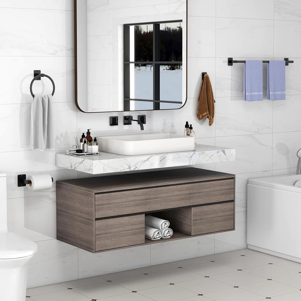 Just installed this 10-piece bathroom set and wow - it completely transformed my space! The matte black finish looks so sleek against my white tiles. Everything feels super sturdy and the installation was a breeze. My towels finally have proper homes and the toilet paper holder is perfectly positioned. Definitely worth every penny for such a quality upgrade!