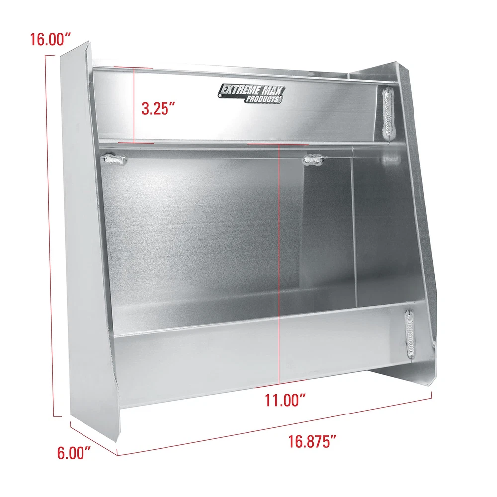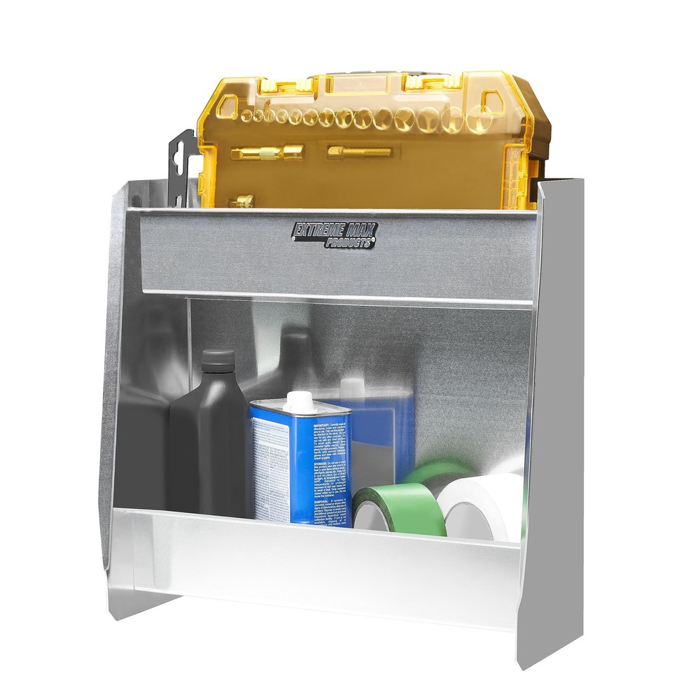 's 2-Shelf Open Storage Cabinet is the perfect storage addition to any garage or enclosed race trailer! The open-face design allows easy access to the shelf's contents, while the lipped edges keep the contents secure and in place during travel. Both shelves are deep enough to fit a variety of supplies, such as aerosol cans and quart-sized jugs. The cabinet features a lightweight aluminum construction with a sleek black powder coat finish, adding an eye-catching design. The cabinet contains pre-drilled mounting screw holes for ease of installation. Due to the variety of surfaces to which the cabinet may be mounted, mounting hardware is not included. Perfect storage addition to any garage or enclosed race trailer! Saves valuable interior space Two shelves with lipped edges keep the contents secure, even during travel Lightweight aluminum construction Includes pre-drilled mounting screw holes for ease of installation; Due to the variety of surfaces to which the cabinet may be mounted, mounting hardware is not included