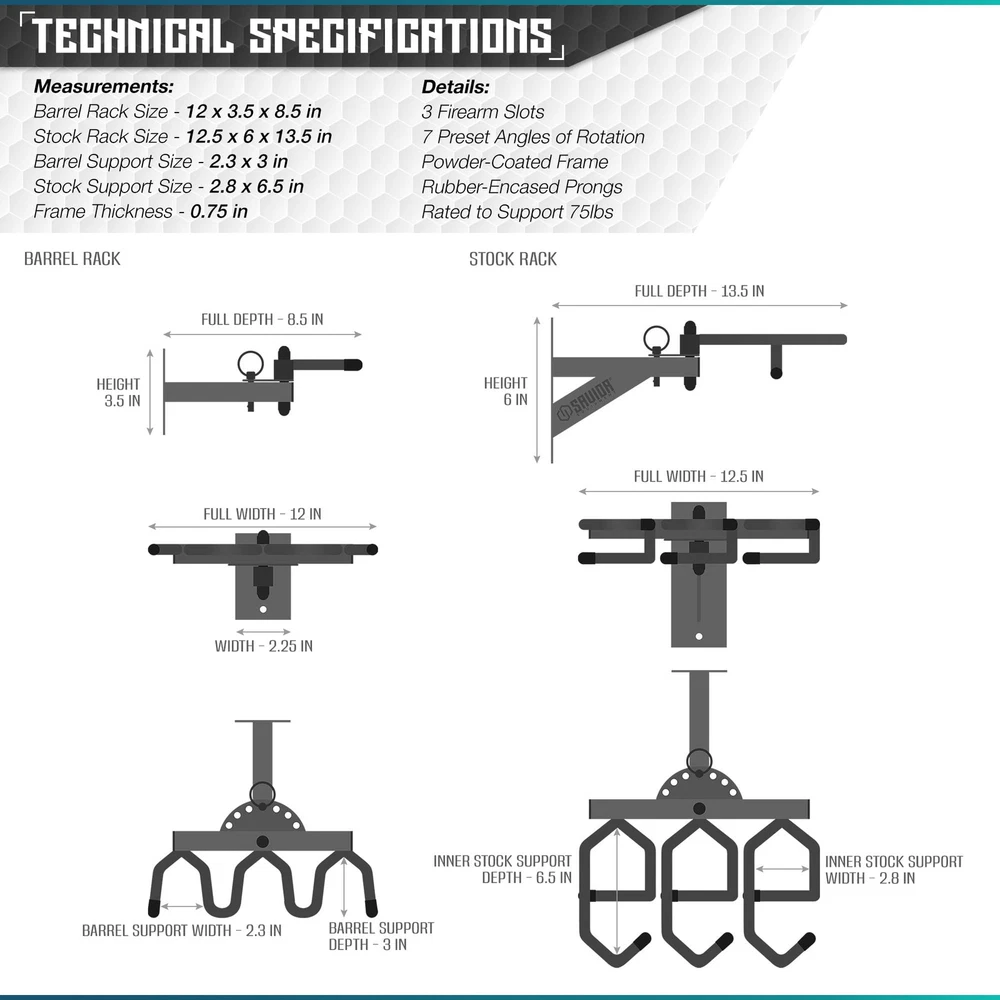 We operate under the belief that our level of success can only be measured in our dedication in providing the best firearm transportation solutions for you. We strive to provide you with exceptional quality gear at an acceptable price point that won’t break the bank. stands behind our gear and understand they will be working for you. [ULTRA DURABLE] - Crafted with 100% Heavy Duty Powder-Coated Steel to be Sturdy and Weather Resistant. [ULTRA HEAVY-DUTY] - Rated to Hold up to 75 Lbs. Fully Customizable Rack Designed to Hold Rifles in Different Length. [ULTRA SECURE] - Built with Rubber-Encased Prongs to Prevent Any Scratches to Your Valuables and Secure Them In Place. [ULTRA SIMPLE] - Pre-Drilled Screw Holes & Mounting Screws Included. Just Remember to Mount on Studs & Use Level to Ensure Perfect Installation. [Purchase with Confidence] - Savior Unquestioned Lifetime-Warranty. Love It or Return It.