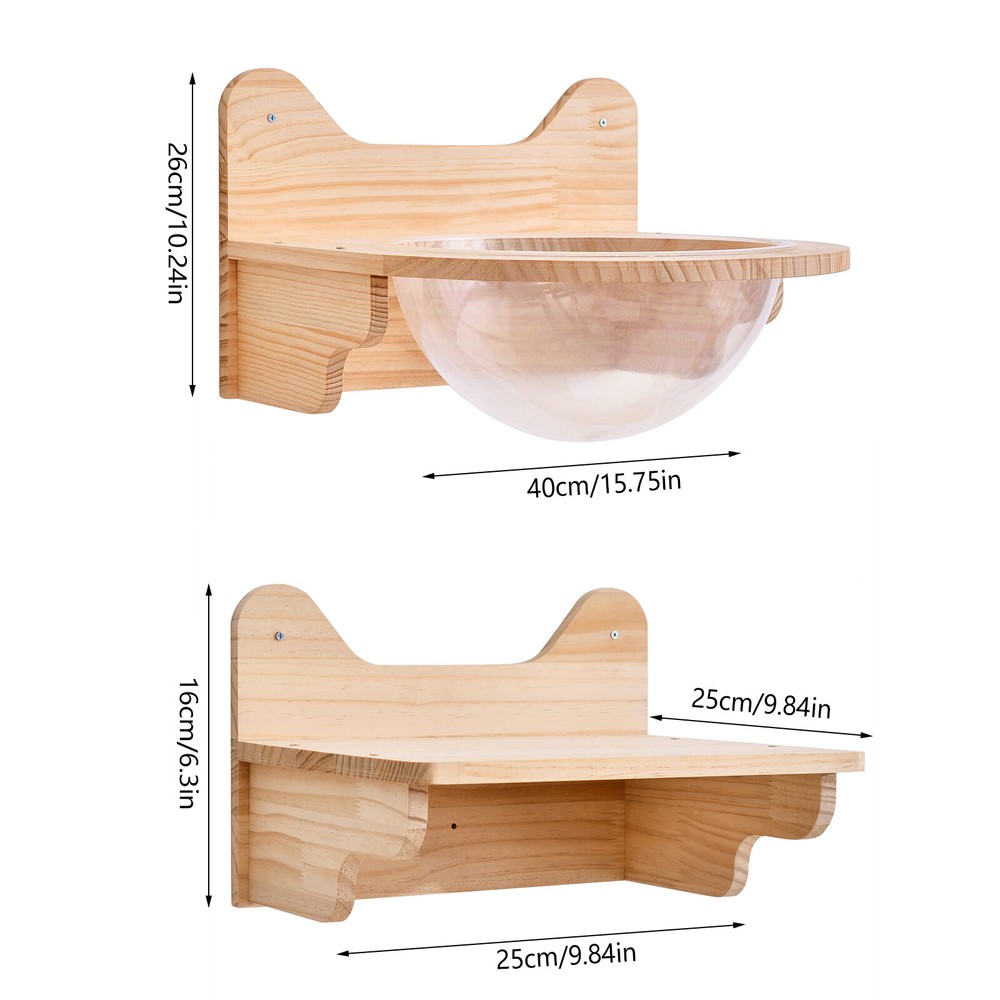Cats Wall Bed Wall-mounted Cat Climbing Ladder Wood Stairs Jumping Platform HOT Description As a member of the family, your lovely pet cat must need to be carefully taken care of and nursed. So it is very necessary to choose a comfortable bed for it. Our wooden cat space capsule is a very ideal choice. It is made of thickened pine wood, which is both durable and safe. The two jumping platforms also allow your cat to release and move freely. The wood texture and color are also very beautiful and versatile. It will become your cat's comfortable den! Details Rounded Corners: All the corners of the capsule and platforms are rounded to prevent bruising the cat and you. Smooth Surface: The surface of the wooden board is very smooth and burr-free, so it is very comfortable to touch without scratching the cat or you. Lovely Appearance: The back of both the capsule and the jumping platforms are designed in the shape of a very cute cat, which can make both the cat and you feel more cozy and relaxed. The simple wood color and geometric design are also very versatile in many rooms. Key Features High-quality Material: The cat capsule and platforms made of thickened pine wood with 0.6inch thickness are very hard and strong without cracking or deforming. So you can be confident to let the cat rest and play on them. Relax Your Cat: Climbing is the nature of cats. With the capsule and jumping platforms, your cat can freely climb and jump to release its nature and become more active and healthy. Good Load-bearing Capacity: The load-bearing capacity of both the platform and the cat capsule is about 17.6 pounds, so most cats can safely jump on it without wobbling. DIY Combination: This package contains two jumping platforms and a cat space capsule. You can freely install them according to your preferences, home layout and cat habits. Enough Space: The widened jumping platform measures 9.84*9.84inch, and the diameter of the capsule is 15.75inch. So they have enough space for most cats to stand and lie down. Round Capsule: The round capsule fits the body shape of the cat well, allowing the cat to lie comfortably inside. Moreover, the shell of the capsule is clear acrylic which allows you to observe the condition of the cat or interact with it easily. Space-saving: The capsule and the jumping platforms are installed on unused walls, which is very space-saving. Even a small space family can create a space for the cat to play. Easy to Install: The cat capsule and platforms are very easy to install with the included accessories. You can easily install it by yourself with the installation steps. Guaranteed Customer Service: Your satisfaction is our top priority, we will make things right for you. If you are unsatisfied with our products, you can contact us and we will ensure you have a pleasant shopping experience in our store. Application This cat capsule and jumping platform set is suitable for families with cats, cat cafes, pet stores, pet hospitals, etc. Package Included 1* Wooden Cat Space Capsule 2* Jumping Platforms Other Accessories for Installation Specifications Color: Wood Color Material: Pine, Acrylic Number of Pieces: 3 Shape: Square and Round Target Species: Cat Board Thickness: 1.5cm/0.6inch Capsule Diameter: 40cm/15.75inch Capsule Height: 26cm/10.24inch Individual Jumping Platform Size: 25*25*16cm/9.84*9.84*6.3inch Package Size: 42*42*25cm/16.5*16.5*9.8inch Load Capacity of Each Piece: 8kg/17.6lbs Gross Weight: 5kg/11lbs Installation Stick the baseboard to the wall horizontally and mark the location of the connection holes with a pencil, and use an electric drill to drill holes in the wall. Nail the high-strength expansion tubes into the wall holes. Use the screws to connect the baseboard to the high-strength expansion tubes on the wall. Tighten the screws to complete the installation. Notes Please allow the slight color difference caused by the shooting light and 1-3 cm error due to manual measurement, and make sure you do not mind before ordering. Payment Delivery details Terms of sales About us Contact us Payment We accept ebay payment 。 Fees such as import duties, taxes are not included in the item price or shipping costs. These charges are the buyer's responsibility. Delivery details Shipping: 2-9 working days to: USA Terms of sales We maintain high standards of excellence and strive for hundred percent customer satisfaction. Feedback is very important to us. We hope that you contact us immediately before you give neutral or negative feedback, so that we can address your concerns. It is impossible to address issues if we do not know about them! About us Your satis faction is our ultimate goal. We work hard to earn your trust and future business. Our certified technicians have tested each item before shipping. The unit comes with 1 year limited warranty on all manufacturing defects. a) If you receive a defective item, you may return it or ask for a discount. Please contact us within 14 days after you receive the package. b) What you returned must be intact and in its original packaging as re? u. Customer is responsible for shipping costs of the returned item. c) We will cover the cost of shipping back t with the shipping rate indicated in the registration page. We will send you a new unit or refund the full payment you paid. Thank you. Contact us Business Hour Business Hour: Monday To Friday: 8:30 AM to 5:00 PM (Beijing China time) Due to time zones, our reply to your questions may not be immediately. But within above working time, we will reply your email within 24 hours. If it's non-workdays, please kindly be patient and wait till Monday. Please contact us with ebay message. Please feel free to contact us if you have any questions. Monday To Friday: 8:30 AM to 5:00 PM (Beijing China time) Due to time zones, our reply to your questions may not be immediately. But within above working time, we will reply your email within 24 hours. If it's non-workdays, please kindly be patient and wait till 