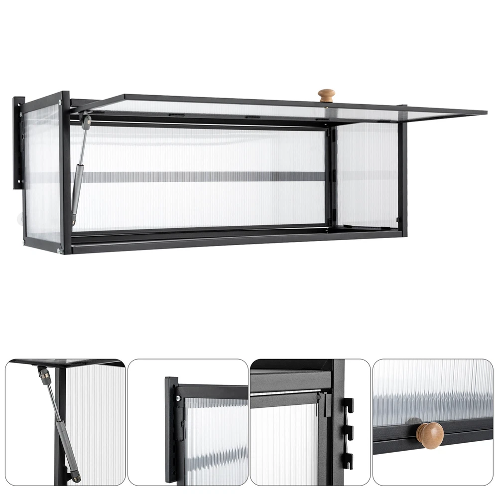 Kitchen Wall Cabinet Balcony Wall Cabinet Living Room Bedroom Storage Cabinet Flip-Up Door Wall Cabinet Wall-mounted Locker (Black , Size: 80*28*30cm) WELCOME Description Key Features High-quality Selection: The high-quality carbon steel and polycarbonate hollow panels, combined with coating technology, make this product resistant to rust and scratches, suitable for long-term use. Wall-mount Design : The wall cabinet can make full use of wall space, especially suitable for small rooms and can be integrated with various occasions. You can install it at a suitable height for quick access to your items. Worry-free Installation : The equipped suction cups, auxiliary stickers, detailed Chinese& English instructions, and glues, ensure a stable installation without damaging the wall. Flip-up Design : The hydraulic support rod allows the opening and closing angle to reach 90 °, making it easier to take items, achieving silent closing and reducing the risk of hitting heads. Maximize Your Storage : Large capacity allows easy storage of kitchen spices, and the flat top can also be used to store items to save space. High Load-bearing Capacity: This cabinet not only looks good but also has a big load-bearing capacity of about 55lbs, so you can place items as you like without worrying about them collapsing. Beautiful Appearance: The unique textured cabinet door plus the wooden handle demonstrate a unique texture. Meanwhile, the semi-transparent visual effect presents a hazy aesthetic of storage. Easy to Clean : The cabinet door can play a dustproof and antifouling role while the smooth surface of the product also enables easy and fast cleaning, and you only need to wipe away the stains with a towel. Specification Material: Carbon Steel, Polycarbonate Hollow Sheet, Wood Surface Treatment: Painting Color: Black, Translucent Special Feature: Flip-up Load Capacity: 25kg/55lbs Product Size: 85*28*30cm/33.5*11*11.8in Details Solid Back Plate : Enlarged and thickened back plate provides stronger support, so you can use this item with peace of mind. Rounded Edges : The edges of this product have been polished smooth to avoid damage caused by bumping, making it safe and comfortable. Application This wall cabinet is an all-around item and is suitable for the kitchen, living room, office, etc. Package Included 1x Wall-mounted Cabinet 1x Chinese&English Installation Diagram All Accessories for Assembly Notes: For firmness and safety, hollow walls, gypsum walls, and other walls that cannot withstand gravity cannot be installed with the wall cabinet. Please allow the slight color difference caused by the shooting light and the 1-3 cm error due to manual measurement, and make sure you do not mind before ordering. Payment Delivery details Terms of sales About us Contact us Payment We accept ebay payment 。 Fees such as import duties, taxes are not included in the item price or shipping costs. These charges are the buyer's responsibility. Delivery details Shipping: 2-9 working days to: USA Terms of sales We maintain high standards of excellence and strive for hundred percent customer satisfaction. Feedback is very important to us. We hope that you contact us immediately before you give neutral or negative feedback, so that we can address your concerns. It is impossible to address issues if we do not know about them! About us Your satis faction is our ultimate goal. We work hard to earn your trust and future business. Our certified technicians have tested each item before shipping. The unit comes with 1 year limited warranty on all manufacturing defects. a) If you receive a defective item, you may return it or ask for a discount. Please contact us within 14 days after you receive the package. b) What you returned must be intact and in its original packaging as re? u. Customer is responsible for shipping costs of the returned item. c) We will cover the cost of shipping back t with the shipping rate indicated in the registration page. We will send you a new unit or refund the full payment you paid. Thank you. Contact us Business Hour Business Hour: Monday To Friday: 8:30 AM to 5:00 PM (Beijing China time) Due to time zones, our reply to your questions may not be immediately. But within above working time, we will reply your email within 24 hours. If it's non-workdays, please kindly be patient and wait till Monday. Please contact us with ebay message. Please feel free to contact us if you have any questions. Monday To Friday: 8:30 AM to 5:00 PM (Beijing China time) Due to time zones, our reply to your questions may not be immediately. But within above working time, we will reply your email within 24 hours. If it's non-workdays, please kindly be patient and wait till Monday. Please contact us with ebay message. Please feel free to contact us if you have any questions.
