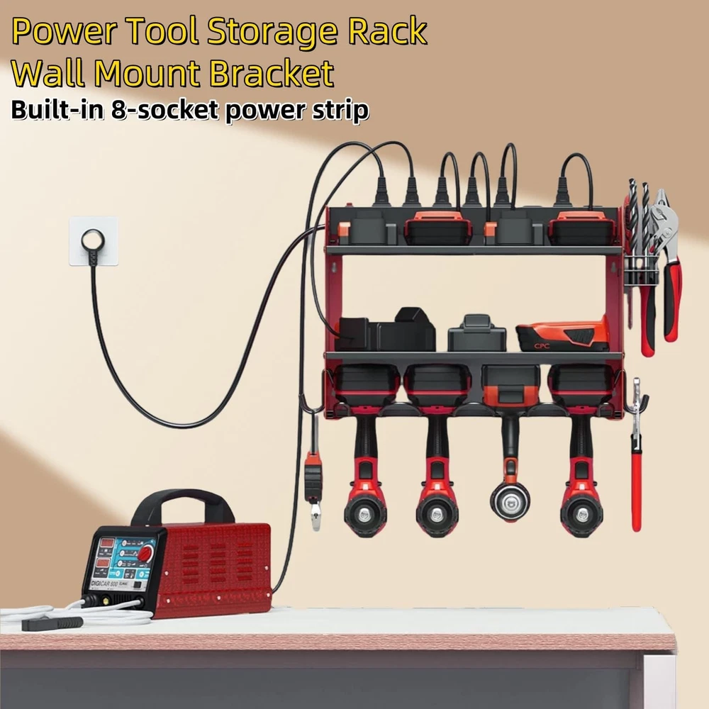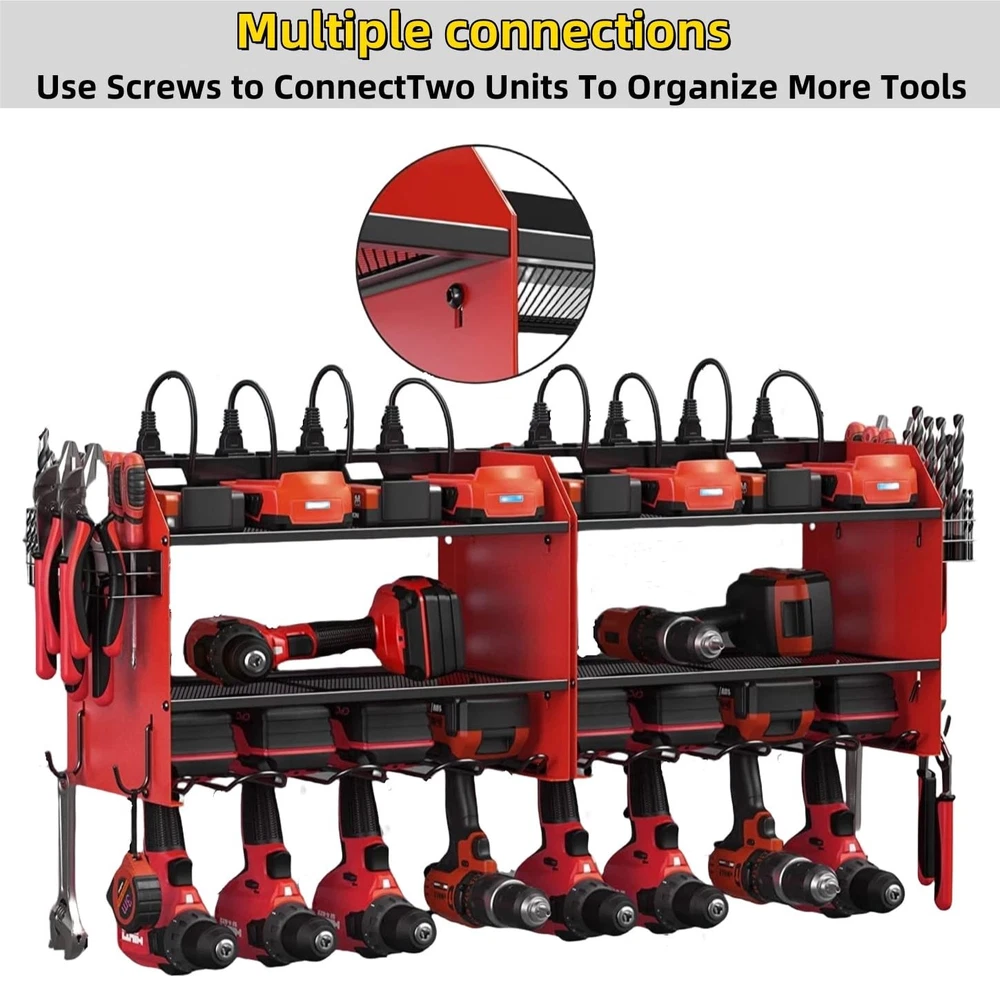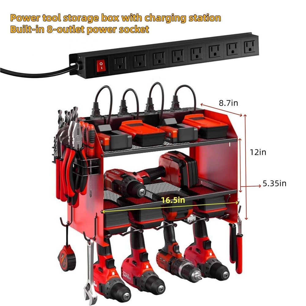 Wall-Mounted Power Tool Organizer with Charging Station for Garage Drills