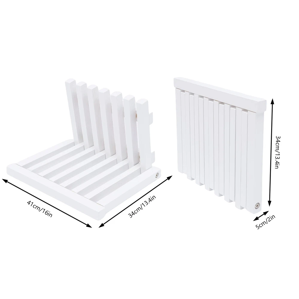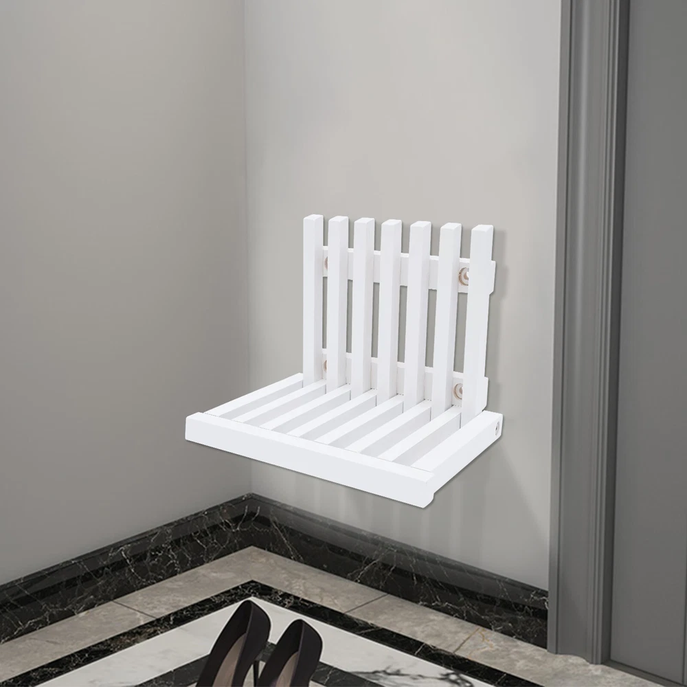 Wall-Mounted Rubber Wood Folding Stool Chair Plus Size 16x13.4in for Kids Adults