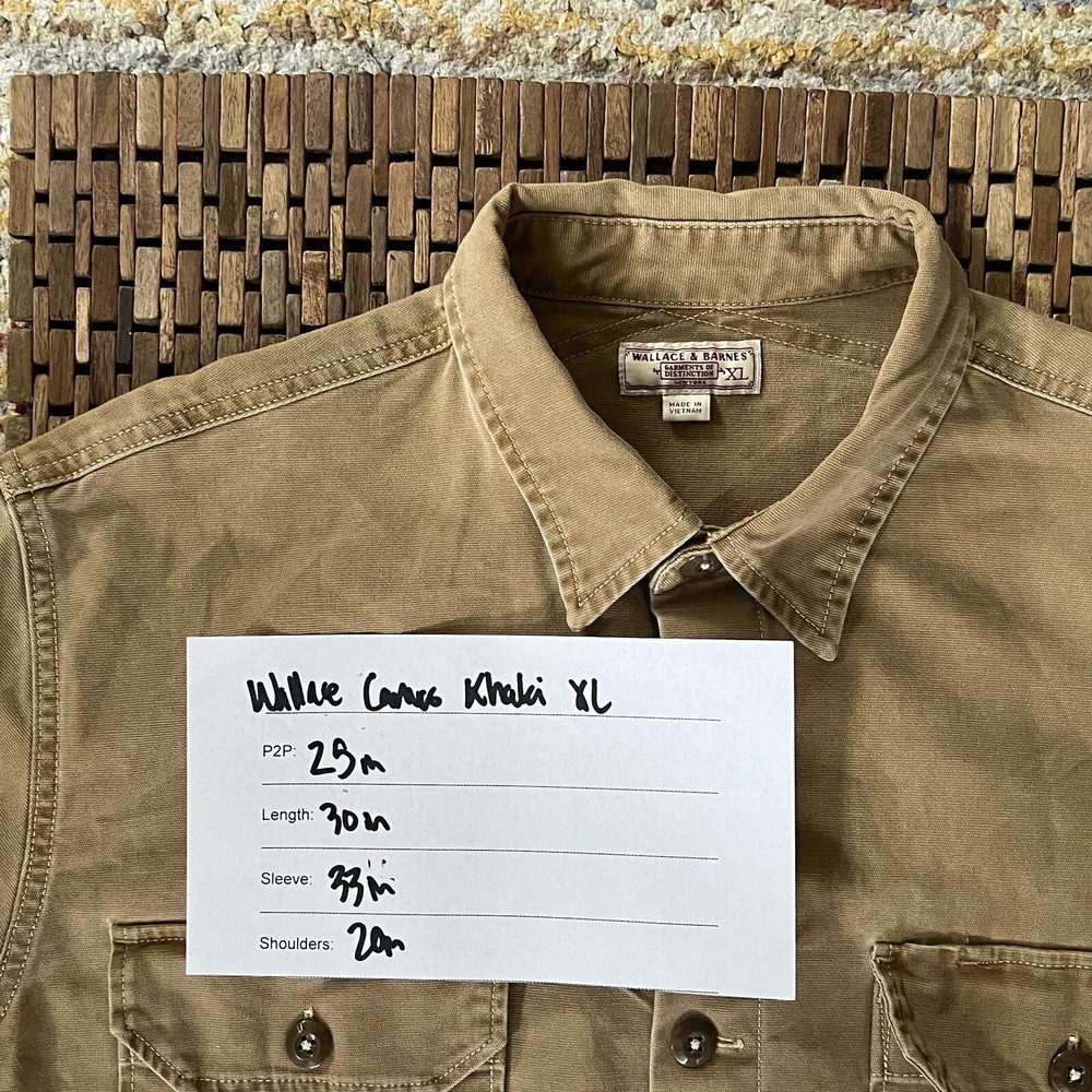 This Wallace & Barnes J.CREW button-down military jacket is a versatile addition to any wardrobe. Made from high-quality cotton, it features a solid beige color, button closure, and a button-down collar. The jacket is perfect for a variety of occasions, including travel, casual wear, work, and business. With its XL size, the jacket is designed to fit comfortably and features a range of pockets for storage. The jacket is suitable for a range of activities, including walking and hiking, and is perfect for both fall, winter, and spring seasons. The jacket is a great choice for any man who wants to add a touch of American style to their wardrobe.