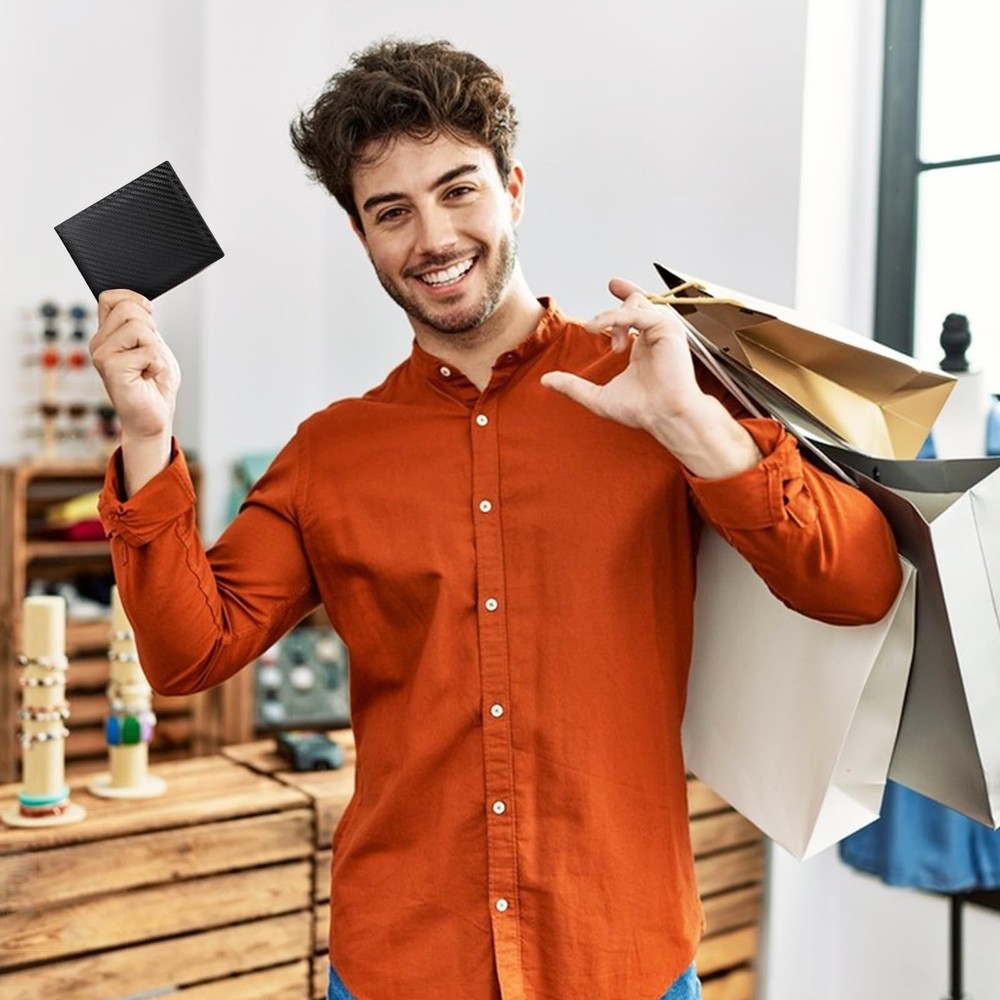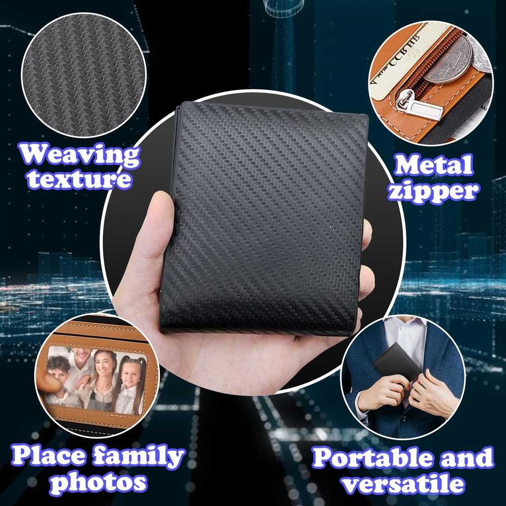 Description: Material: PU leather Color: black / brown Weight: 90g/pc Size: 12*10*1.5cm / 4.7*3.9*0.6inches Package: 1*men wallet Tips: 1. The size is manually measured,and please allow a 1mm error. 2. Due to different shooting light, the color may have a slight error, please understand, thank you. Timeless Sleek: This is made of PU leather, with a comfortable touch and durability. The wallet’s classic carbon fiber finish is exquisitely stylish, effortlessly blending elegance, quality, and practicality into one stunning design. Elite Features: The zippered pocket can store coin, 3 card slots plus 1 ID window enable instant retrieval while traveling, at stores or workplaces, 2 large cash compartments that can accommodate the cash needed for daily use. Minimalist Bifold Wallet: The front pocket wallets for men measure 4.7*3.9*0.6 inches, and this thin wallet is slim enough to slide effortlessly into your front pocket without bulk, and is crafted for seamless everyday carry. Fashion-Forward & Functional Details: The zipper wallet adopts a contrasting color design inside, with black and brown spliced together, simple and elegant, fashionable and full of vitality. A handy leather tab shields the zipper pull, keeping the interior scratch-free. Fashion-Forward & Functional Details: The zipper wallet adopts a contrasting color design inside, with black and brown spliced together, simple and elegant, fashionable and full of vitality. A handy leather tab shields the zipper pull, keeping the interior scratch-free.