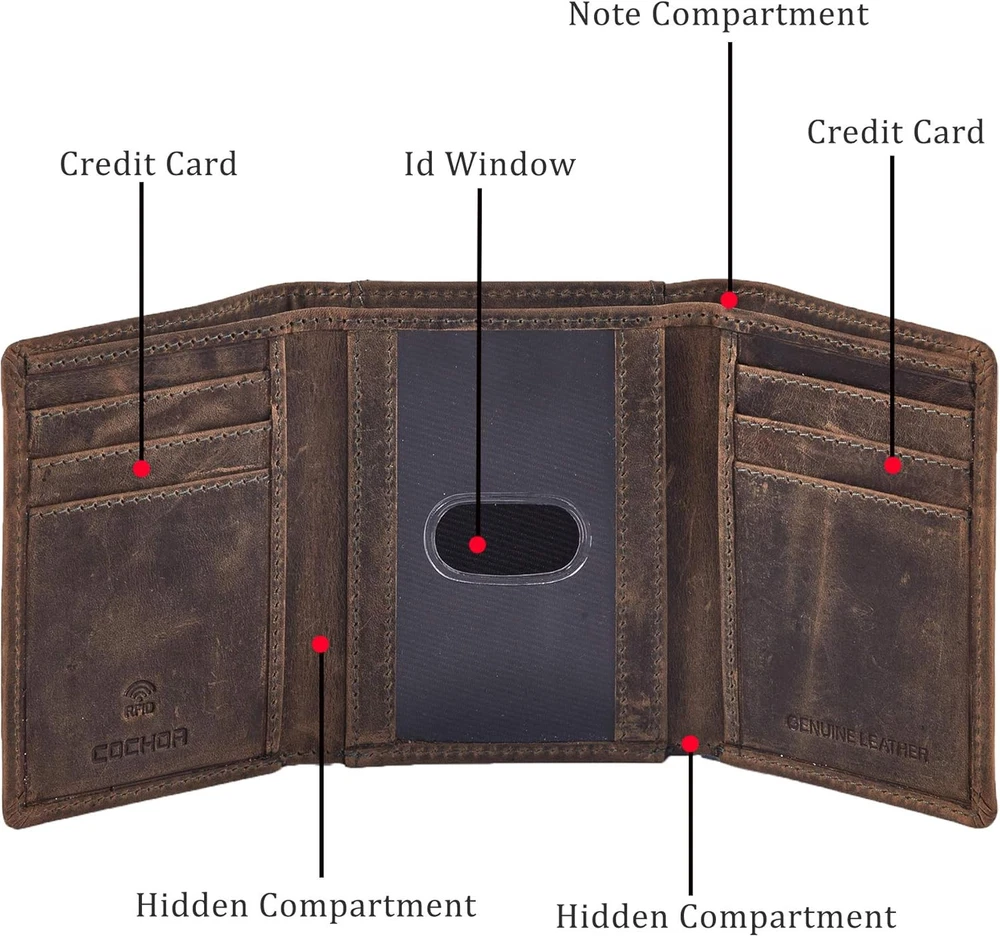Wallet for Men Trifold Real Leather RFID Blocking Credit Card Case MOSS GREEN Product Details Package Dimensions : 5 x 4 x 0.7 inches; 6.35 ounces Department : mens This wallet is made from top grain genuine leather and its beauty enhances with use, which is a typical characteristic of genuine leather. This product comes in a variety of colors and finishes, and you can choose the ones which suits you the best. The hand touch of this wallet is smooth and natural, which is why you will always love holding it in your hands for that premium touch.