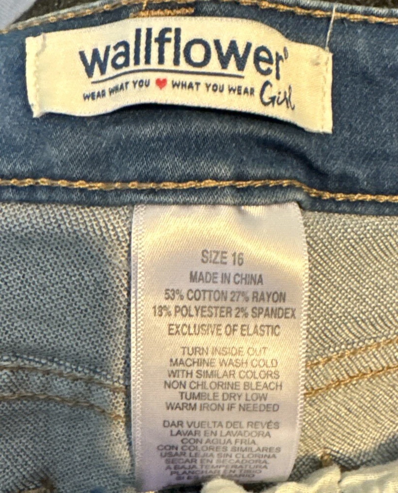 Welcome To Mitch's Stitches! We specialize in providing our customers with name brand designer clothing at a fraction of the price. We strive for excellence and our #1 goal is to make our customers happy. If you have any questions please feel free to contact us! Item Description: Wallflower Girl Size 16 Stretch Medium Wash Jeans Cotton Spandex Polyester Rayon Please see photos for measurements . We aim to ensure our items are listed accurately and honestly. Items ship with USPS Priority Mail (1-4 days) or USPS Ground Advantage (2-5 days). *Please remember all clothing items may fit differently depending on brand or fit. We strongly urge our customer's to check measurements first to guarantee proper fitting. All items returned must be in original condition. If an item was sold as "New with tags" it must have all tags present. Thanks for looking!