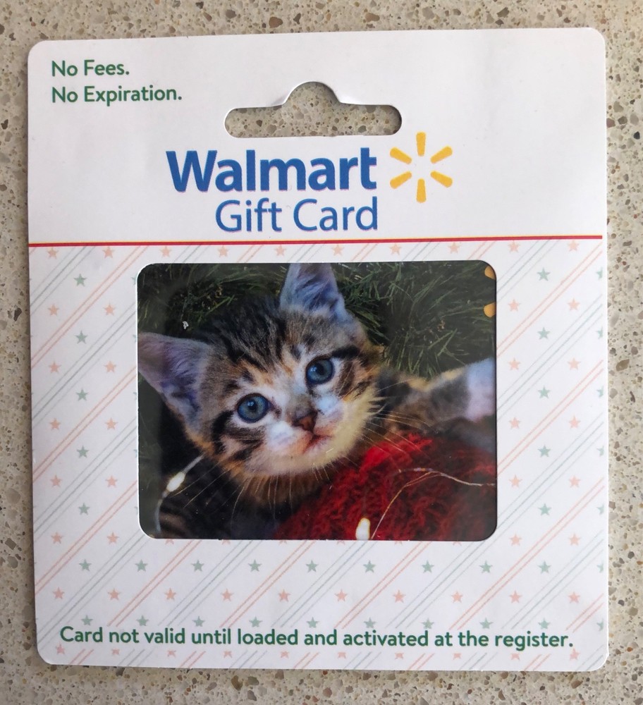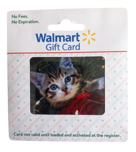 The Walmart Kitten by Christmas Tree Gift Card is a collectible gift card featuring a cute kitten. This card is issued by Walmart and does not have a monetary value, making it a perfect gift for fans of the Peanuts franchise. It can be used as a collectible item or redeemed for items in Walmart's store. Perfect for adding some holiday cheer to any gift basket or stocking. NOTE: This card has no monetary value. It is perfect for those who collect gift cards or those who love unique and rare items. Add this Walmart gift card to your collection today! It has never been used or loaded with funds. It could be used to load money ( It is in a sealed package to protect the card number and pin ) or add it to your collection.