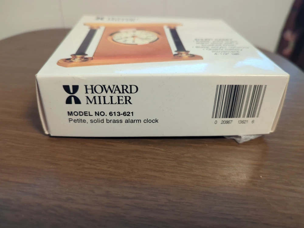 Room: Any Room Finish: Brass Material: Brass Frame Material: Brass gtin13: 020867136216 Color: Gold Original/Reproduction: Original Style: Traditional Number Type: Roman Numerals Display Type: Analog Model: 613.621 Features: Alarm Vintage: Yes Item Width: 1 1/4 inches Time Period Manufactured: 2010-2019 Brand: Howard Miller Movement: Quartz (Battery Powered) UPC: 020867136216 Shape: Rectangle Item Length: 4 1/2 inches Era: Late 20th Century (1970-1999) Item Height: 4 1/2 inches Country/Region of Manufacture: China Type: Desk Clock
