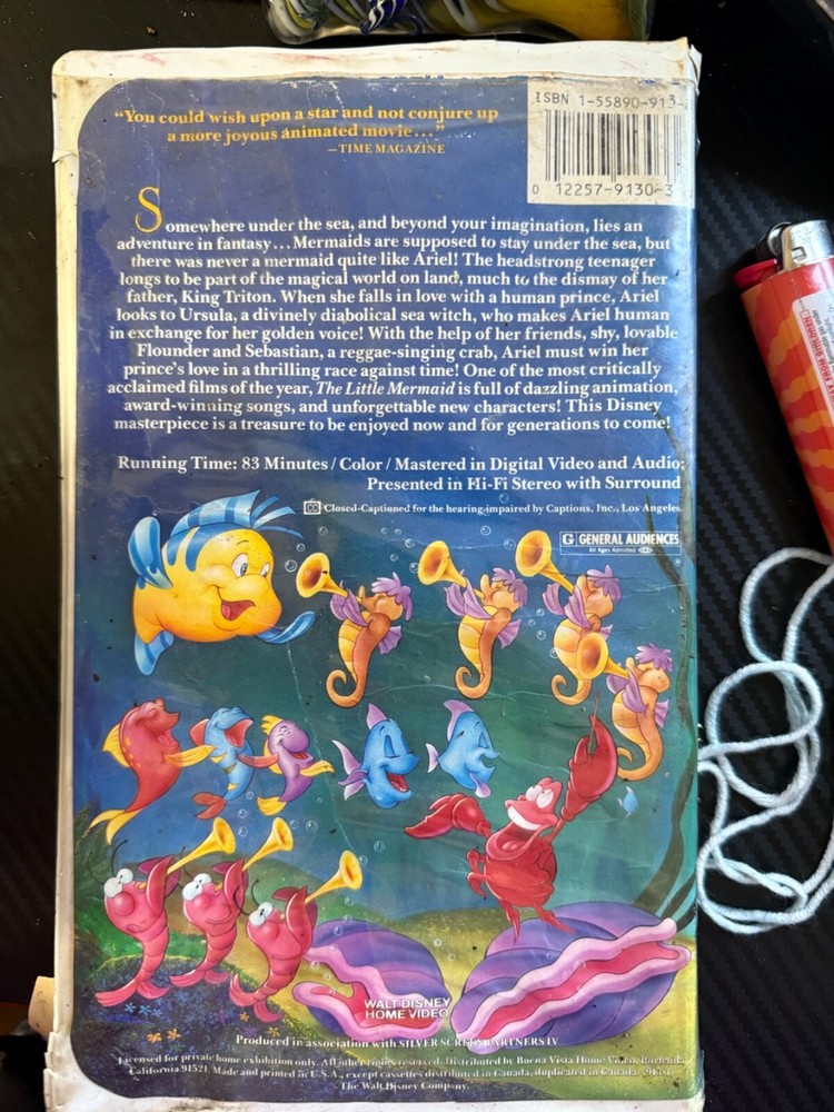 This rare Black Diamond VHS of *The Little Mermaid* is a must-have for Disney collectors! The banned artwork cover makes it extra special, and the tape plays perfectly. A true nostalgic treasure—great condition, free shipping, and a fantastic deal for any fan. Don't miss out on owning a piece of Disney history!