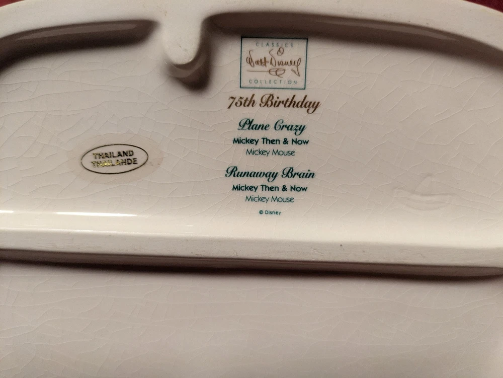 This is a classic Walt Disney Mickey Mouse ceramic, Then & Now (Plane Crazy 1928 & Runaway Brain 1995). This beautiful ceramic piece was crafted (molded and painted) in Thailand for the Walt Disney Classics Collection and is considered to be a magnificent example of the evolution of the Walt Disney character mouse. Comes in the original box with literature included.