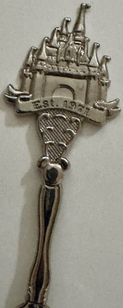 Vintage collectible souvenir spoon from Walt Disney World. Features the Disney castle on the top with an Established 1971 banner. Hidden Mickey on the handle and Walt Disney World stamped on the spoon base. Approximately 5” long. NOT FOR FOOD USE. Preowned, in excellent condition. Looks like it’s only been displayed.