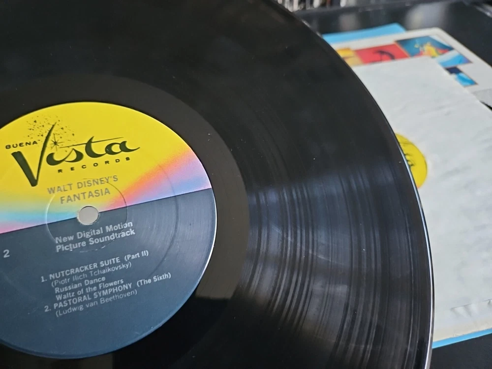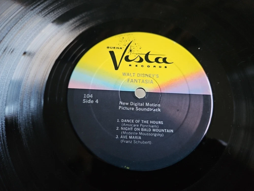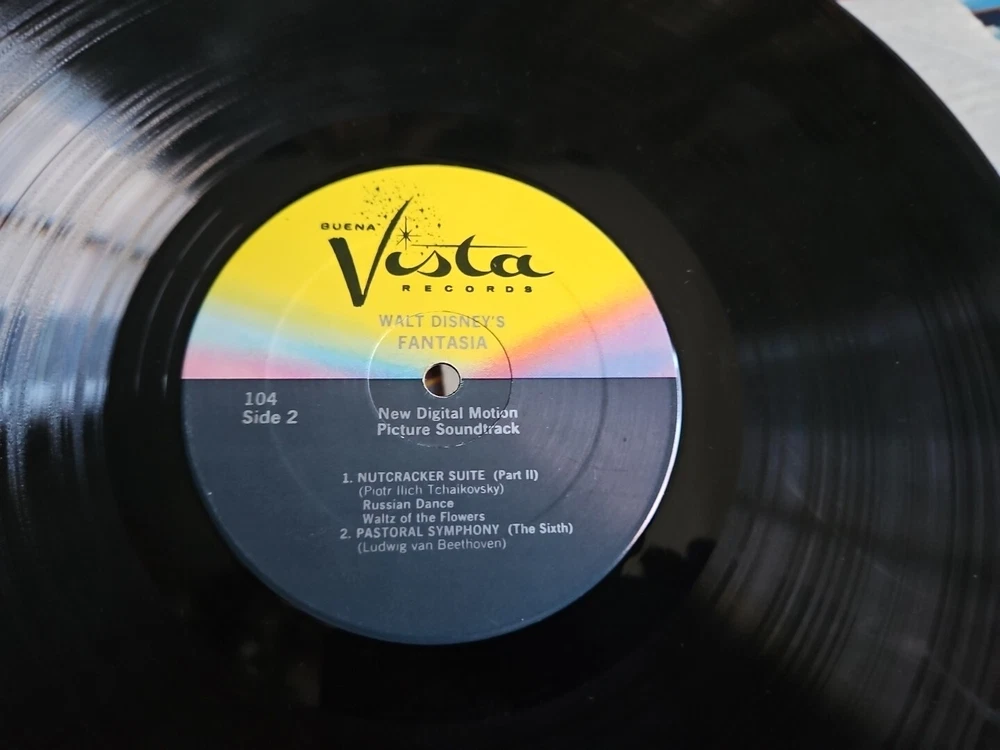 Irwin Kostal – Walt Disney's Fantasia Label: Buena Vista Records – 104, Buena Vista Records – V 104 Format: 2 x Vinyl, LP, Album, Promo Country: US Released: 1982 Genre: Classical, Stage & Screen Style: Soundtrack, Baroque, Romantic, Classical A1 Toccata And Fugue In D Minor Composed By – Johann Sebastian Bach A2 The Sorcerer's Apprentice Composed By – Paul Dukas Nutcracker Suite (Part 1) A3.1 Dance Of The Sugar Plum Fairy Composed By – Peter Ilich Tchaikovsky* A3.2 Chinese Dance Composed By – Peter Ilich Tchaikovsky* A3.3 Dance Of The Reed Flutes Composed By – Peter Ilich Tchaikovsky* A3.4 Arabian Dance Composed By – Peter Ilich Tchaikovsky* Nutcracker Suite (Part 2) B1.1 Russian Dance Composed By – Peter Ilich Tchaikovsky* B1.2 Waltz Of The Flowers Composed By – Peter Ilich Tchaikovsky* B2 Pastoral Symphony (The Sixth) Composed By – Ludwig van Beethoven C1 Rite Of Spring Composed By – Igor Stravinsky D1 Dance Of The Hours Composed By – Amilcare Ponchielli D2 A Night On Bald Mountain Composed By – Modest Mussorgsky D3 Ave Maria Composed By – Franz Schubert Record Company – Disneyland/Vista Records Phonographic Copyright ℗ – Buena Vista Distribution Co., Inc. Copyright © – Walt Disney Productions Pressed By – PRC Recording Company, Compton, CA Conductor, Producer – Irwin Kostal Liner Notes – David R. Smith Recorded By, Mastered By – Soundstream, Inc. "New digital motion picture soundtrack" (Promotional Copy NOT FOR SALE)