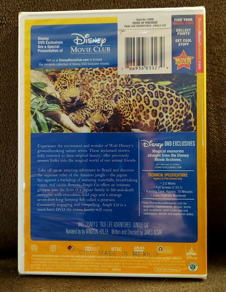 Walt Disney's True Life Adventures Jungle Cat Amazon Nature Documentary on DVD