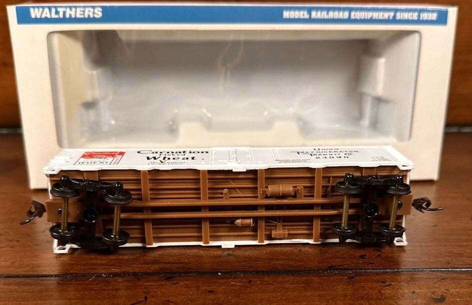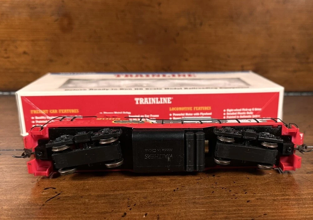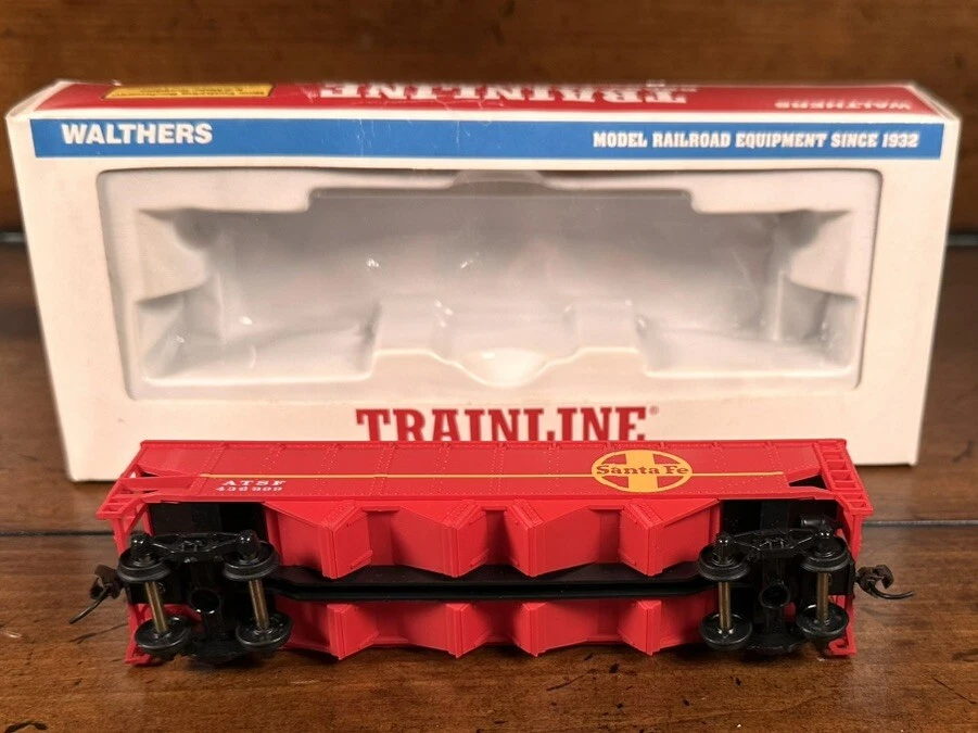 The Walthers Trainline Deluxe HO Model Train Set is a vintage 1998 train set featuring a Santa Fe Southern Railway replica box car. This pre-built set includes a powerful diesel locomotive, 5 train cars, Bachmann EZ Track rail system, MRC Power Pack, and working headlights. Perfect for collectors and model train enthusiasts, this electric train set also includes a Railpower 1300 Powerpack for control. Weighing 6 lb, this HO scale train set is a great addition to any model railroad layout. A few boxes are torn, but are in working condition