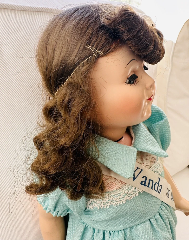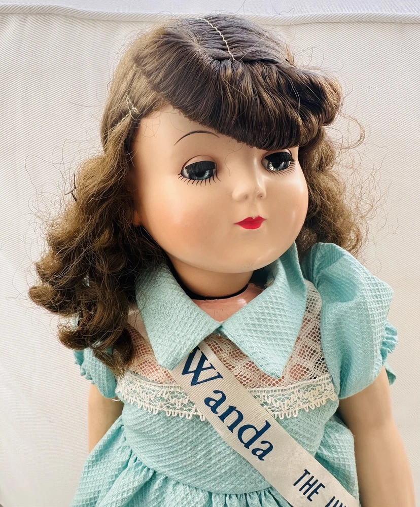 Doll Complexion:LightDoll Gender:Girl DollEthnicity:CaucasianType:Play/Collector Dol + Small 7.5" dollYear Manufactured:1950Country/Region of Manufacture:United StatesDoll Hair Color:BrownAntique:YesHandmade:NoDoll Hair Type:WavyFeatures:Collector Toy, Eyes Open and Close, Interactive, No Battery Used, Removable Clothes, Special Edition, Timeless Treasure, WashableItem Length:18 inBrand:Advance Doll & Toy CoOccasion:All OccasionsMaterial:Hard PlasticSet Includes:DollUnit of Sale:Single UnitOriginal/Licensed Reproduction:OriginalDoll Eye Color:Bluegtin13:does not applyVintage:YesUPC:does not applyCharacter:WandaTime Period Manufactured:1950-1959Signed:No