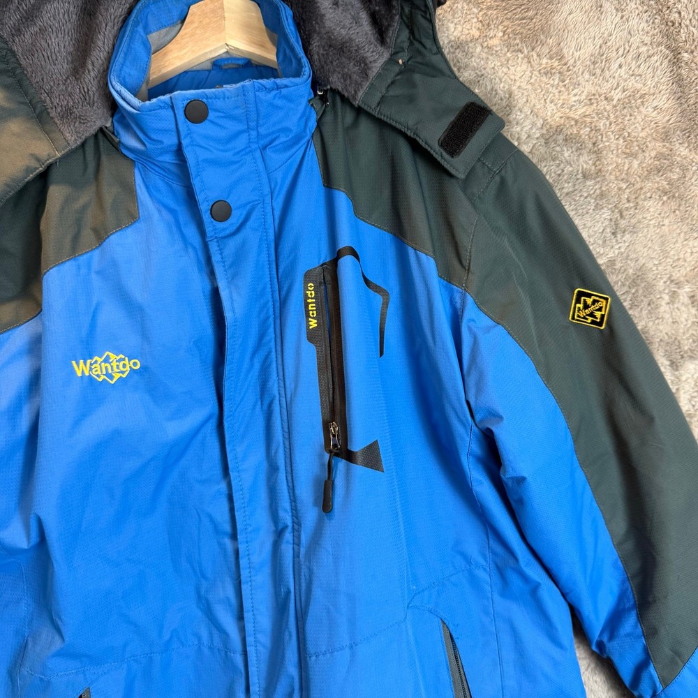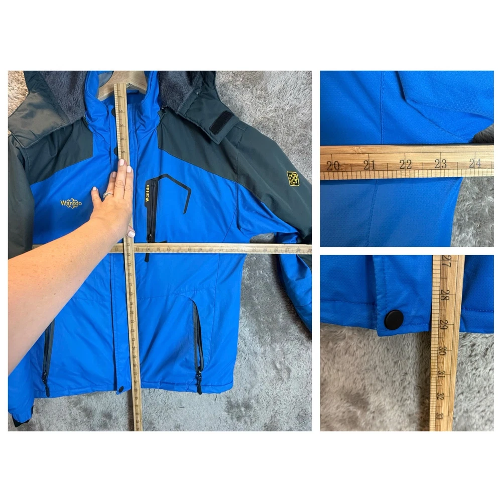 Wantdo Men's Waterproof Winter Jacket Warm Winter Coat Jacket Ski Jacket Hooded Parka Blue Gray M Medium Size medium, approx measurements in photos Gently worn, minor wear, see closeup photos. No stains, rips, ect.