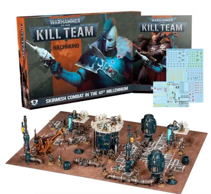 New sealed - some of the cellophane is ripping but item still factory sealed. 1x 96-page Kill Team: Nachmund Rules Manual: Bring your covert wars to the Nachmund Gauntlet, with background material for this pirate-ridden region and the Aeldari and Chaos Space Marine forces within. This manual also includes new rules, datacards, and background tables for the Legionary and Corsair Voidscarred Kill Teams, as well as additional special rules and Shadow Operations missions set in this volatile killzone. 20x Citadel Miniatures: Two full Kill Teams of Corsair Voidscarred and Legionary operatives, each featuring a wide array of customisation and alternate assembly options. Extra components allow for deep personalisation of your Kill Team, and many models can be assembled as multiple different kinds of operative. Each team also comes with a full transfer sheet with over 360 markings and emblems for customising your models. 18x Sector Mechanicus Terrain Pieces: Recreate the abandoned factories and industrial zones of the Nachmund Gauntlet. This assemblage of modular terrain pieces can be assembled in any number of ways, and are fully compatible with a wide range of other terrain kits. 1x Double-sided Kill Team: Nachmund Gameboard: Fight over the battle-scarred outposts of the Nachmund Gauntlet on this double-sided 30" x 22" cardboard gameboard. You’ll need a copy of the Kill Team Core Book to make full use of this supplement.