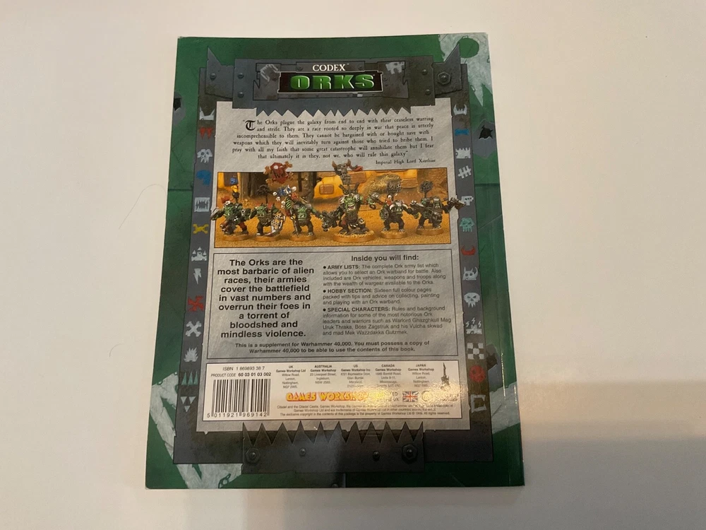 This listing is for an Ork Codex printed in 1999. I bought it in high school when we didn’t really discuss editions, but I believe this is now considered the 3rd edition ruleset.