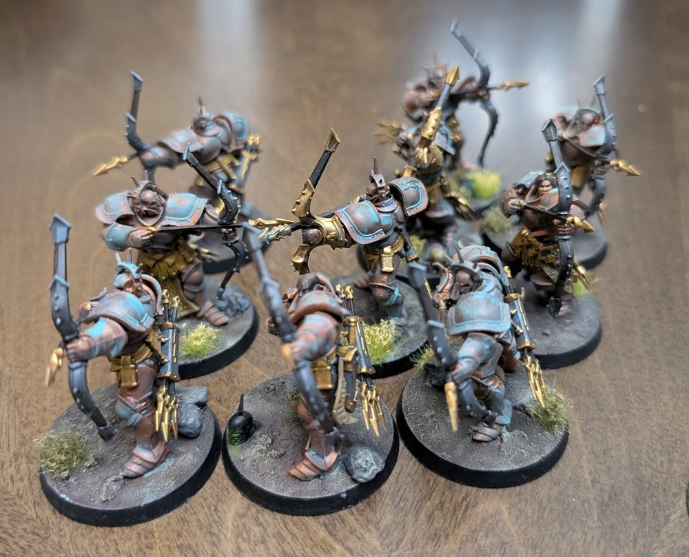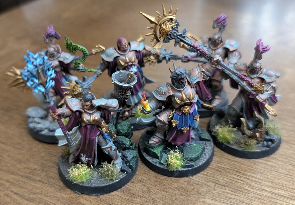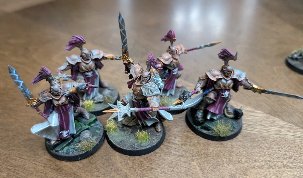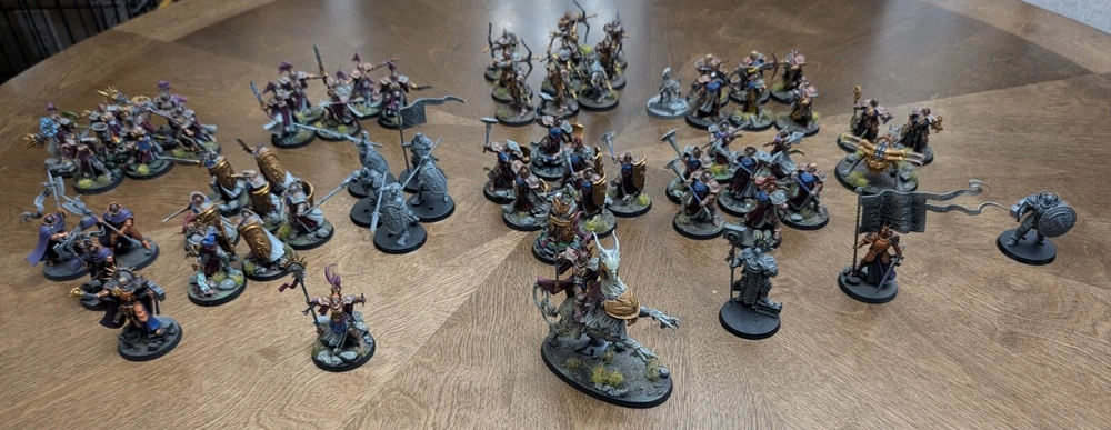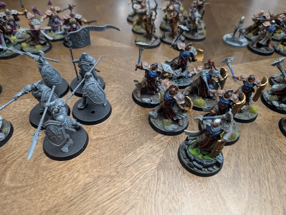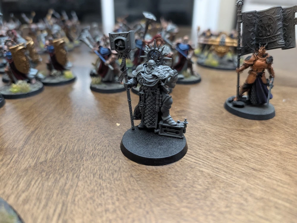 Dive into the fantastical world of Warhammer Fantasy Battle with this Stormcast Eternals army lot, a must-have for enthusiasts and collectors alike. Mostly painted and ready to display, these miniatures showcase the intricate detail and vivid colors that Games Workshop is renowned for. Perfect for both seasoned gamers and newcomers to the Age of Sigmar version, these figures are poised to bring the mighty battles of Warhammer to life. The mixed lot includes a variety of Stormcast Eternals, reflecting the diverse and powerful aesthetic of this iconic Warhammer faction. With some painting, this set offers a canvas for personal touch and a stepping stone for those looking to enhance their gaming experience. Enhance your collection and conquer the battlefield with these storied figures. Just over 2200 points of models. 1x Lord Arcanum on Gryph Charger 1x Lord Important 1x Lord Ordinator 1x Knight Incantor 1x Knight Vexillor w/ Banner of Apotheosis 2x Squads of Sequitors 1x Squad of Liberators 1x Squad of Vindicators 2x Squads of Castigators 2x Squads of Evocators 1x Squad of Praetors 2x Squads of Vigilors 1x Celestar Ballista Also throwing in a spare Annihilator model.