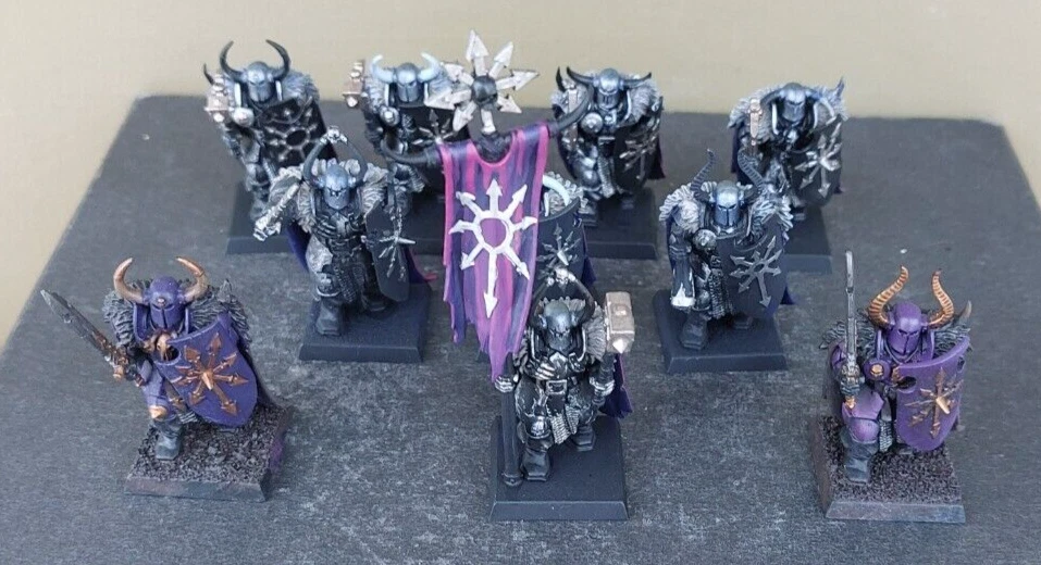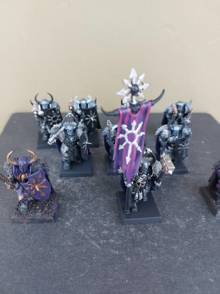 Warhammer - Fantasy / Old World - Warriors of Chaos x 10 - Painted and based Having a loft dive at home and am listing a load of old toys and stuff. Please keep an eye out - I have really old things (mostly toys) that I am gradually going through to work out what I have and will be listing over the next few months when I get time. I will combine postage on multiple purchases. Thanks for looking and take care.