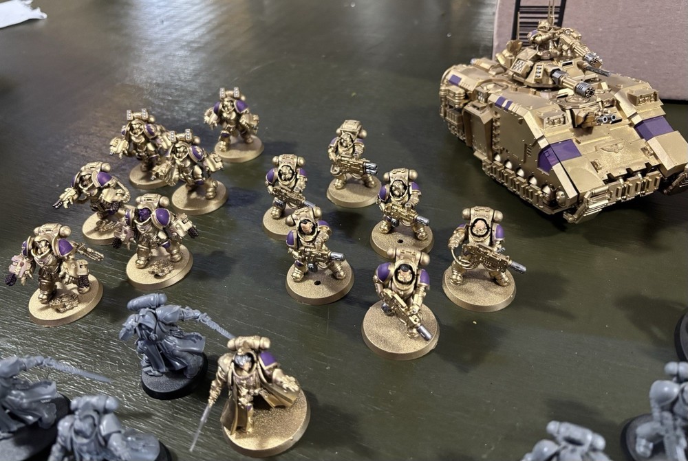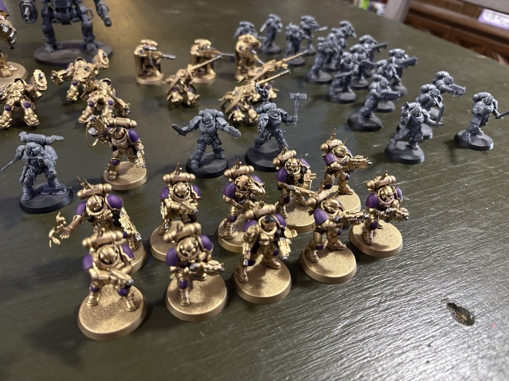 Warhammer 40k space marine army. MSRP ~ 1400 Includes: Gravis CPT Chaplain Ancient Apothecary X2 Librarians X2 Phobos Librarians X4 LTs X17 Reivers X10 infiltrators X10 intercessors X5 Hellblasters X6 Eradicators X6 Aggressors X3 inceptors X3 Suppressors X3 Eliminators Invictor warsuit Redemptor Dreadnought Firestrike servoturret Repulsor