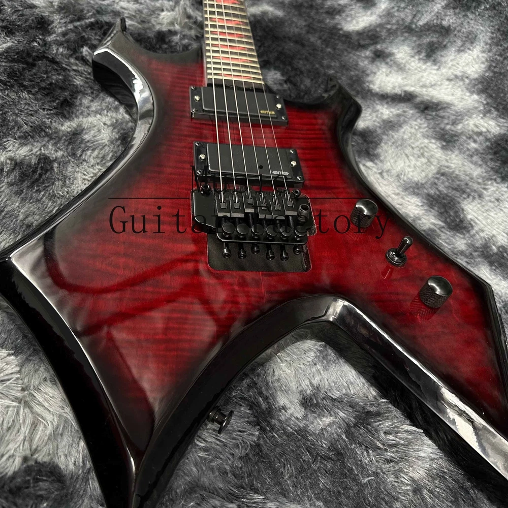 Warlock Red Flame Maple Top Electric Guitar Solid Black Hardware Black Fretboard