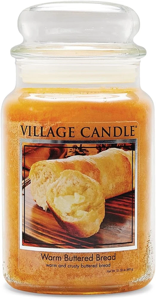 Fragrance Notes of Warm and Crusty Buttered Bread This golden brown candle is made with the highest quality food-grade paraffin wax for a clean and even burn. We source only the finest ingredients for a true-to-life, long lasting fragrance experience. Pioneered by Village Candle, our dual wick technology is a unique design that ensures a cleaner, more efficient burn, as well as a superior fragrance experience. Before reaching your home our lead-free cotton wicks are hand-trimmed by our team. Our candles have a long and consistent burn time of up to 170 hours (depending on the size of candle). Burn your candle for a minimum of 2 hours and no more than 4 hours, or until you reach a full wax pool. Dimensions are 3.8''L 3.8''W 6.75''H. Born from a passion for New England craftsmanship that still burns strong to this day. Our candles are proudly made in America by our highly skilled candlemakers in Wells, Maine. From our Village to your village remains our inspiration all these years. Product Description
