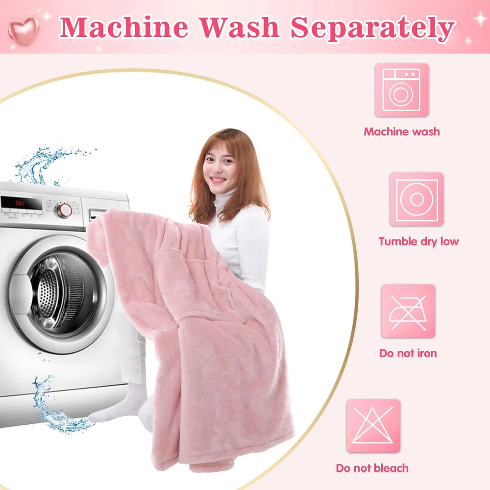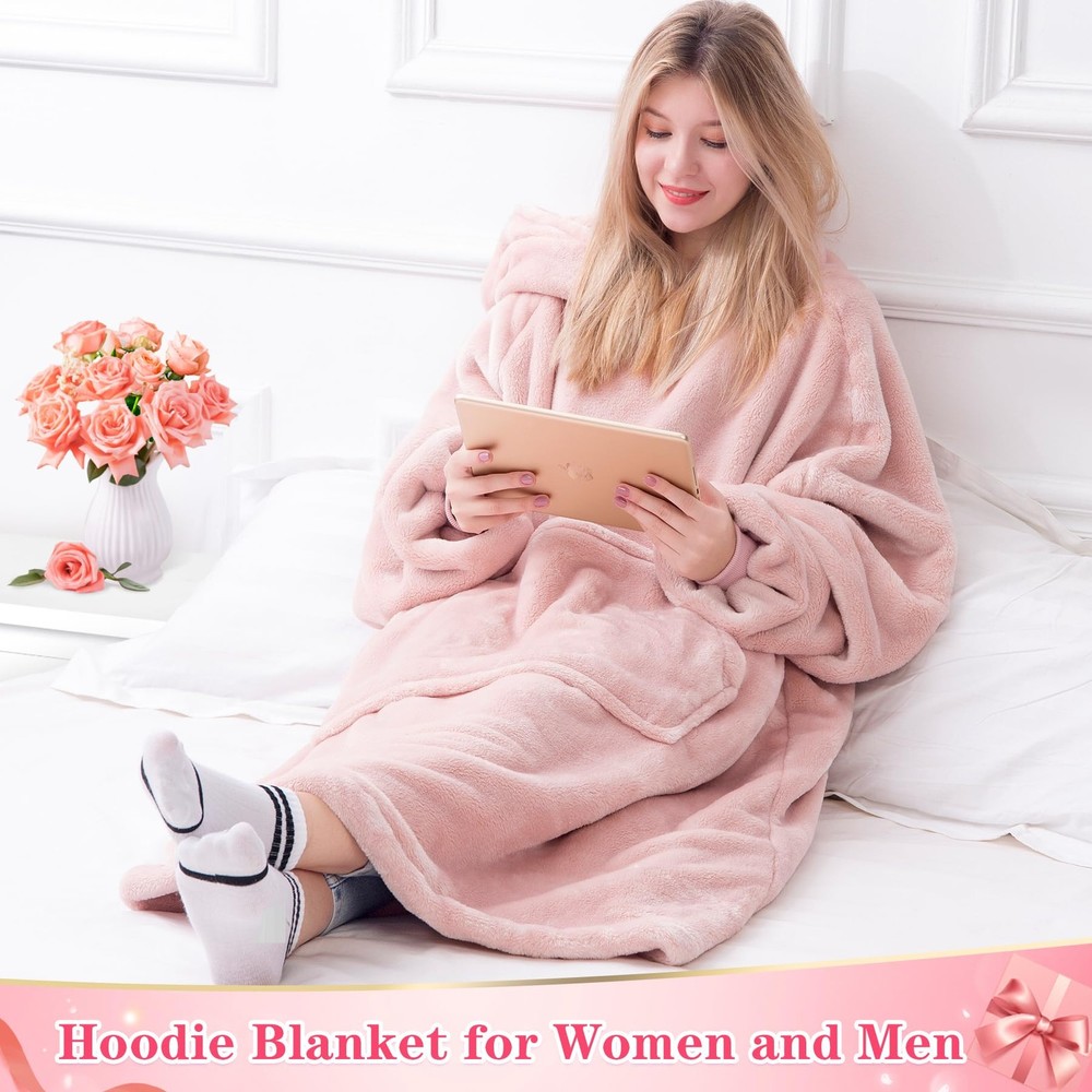 Package Included: 1 * Wearable Blanket This plush hoodie wearable blanket with a classic simple design that keeps you warm and cozy. Purpose: You can cover your entire body into this giant blanket. You can wear it for lounging around the house, or any camping or outdoor activities. FLUFFY HOODED BLANKET: This is a true oversized hoodie blanket for women and men. It is designed for customers looking for softness. Cozy and warm, a must have for enjoying happy hours. It is perfect for lounging at home, watching TV, gaming, reading a book, napping, or any camping or outdoor activities. MAXIMUM COMFORT: Blanket hoodie with sleeves cover shoulders, arms, allows you to move around, use your hands freely. The big plush hood keeps your head toasty warm and long enough to wrap your legs free to move without curling up that keep you warm from head to toe. INTIMATE DETAIL DESIGN: Cozy plush fabric for soft touch. A perfect size for women men. There is a big pocket to hide the TV remote, phone, snacks, and more with ease of access. You can pull your hands inside for extra warmth and take your warmth wherever you go. PERFECT GIFT: It’s the best gift for Christmas, birthday, Thanksgiving, Mother's Day, Father's Day and anyother special occasion. This blanket hoodie is the best present for wife, best gifts for husband, best gifts for mom, best gifts for dad, best gifts for girlfriend boyfriend teenagers and etc. EASY CARE: Sincerely recommend that you wash this giant blanket separately before you use it. Machine washable long wearable blanket in cold water, tumble dry on low heat, no ironing or expensive cleaning required! This oversized hoody blanket stays the same after every wash.