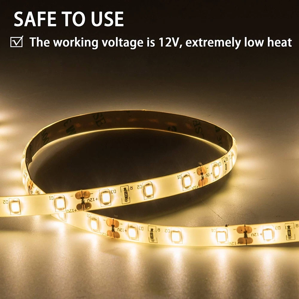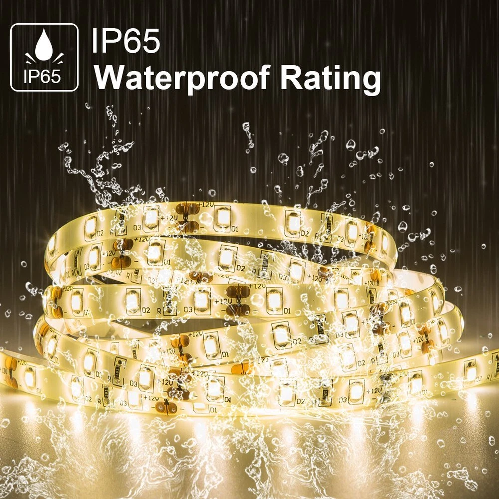 Please Note: A power adapter is required but not included, you can choose Lights Kit"B075K7798B". Specifications: ● Color: Warm white ● Size of LEDs: upgraded version 2835 ● Length of a tape: 5m/ 16.4ft ● Quantity of LEDs : 300 ● Light Output (Lumen): 1333.6lm ● Working Voltage: 12V DC ● Dimmable: NO. ● Waterproof: yes Features: ● Continuous length, packed with 5 meter.Long life span 50,000+ hours and Low power consumption. ● Cuttable: It can be cut every 3 LEDs along the cutting marks, without damaging the rest part. ● The working voltage is 12V. Extremely low heat. It is touchable and safe to children. ● Eco-Friendly, RoHS compliant: No battery. No lead or mercury. No UV or IR Radiation. ● Connectable: use a L shape or extension connector if you need to connect the strip. ●With back adhesive, can be stick to anywhere you want. Package Include: ● 1x Light ● 1x User Manual ● 6x Fixing Clips Wide usage: ● lights apply to Cars, Kitchen, Vehicle, TV, Gardens, Homes, Bar, Aisle, Market lights GREAT ● 24 months hassle-free , free or full . If you have any questions, please feel free to us. Cutable and connectable: The strip light is easy to cut. It cuts every 3 LEDs along the cutting mark without damaging the rest (Note:not including the power adapter and dimmer) Not dimmable: This strip contains 300 bright LEDs. The working voltage is 12V and the heat is very low. It is touchable. IP65 for indoor or outdoor use. Easy to install: self-adhesive back, 5M super self-adhesive tape. Wipe the surface with alcohol or water before use, then remove the paper towel stuck on the to paste. (6 lamp clips for fixing the waterproof strip) You will receive: 1pc 300 SMD 2835 16.4ft / 5m non-dimmable daylight white , 6pc clip and 6 fixing screws High-Quality Light Strip Decoration : High flexibility allow you to decorate various spaces in your home with incredible ease. Bend the lights around corners or in tight spaces to decorate your stairways, mirrors, or closets with quality lighting.