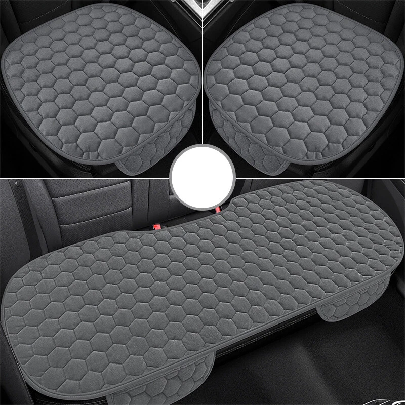 Product Name: Warm Winter Plush Backless Three Piece Set Applicable season: spring, autumn, winter Product Material: Short plush fabric Applicable model: universal type Bottom fabric material: Anti slip granular bottom fabric Product Color: Elegant Grey Lafite Red Cherry Blossom Pink Cayenne Brown Mysterious Black Product specifications: front seat cushion * 2 rear seat cushion * 1 Soft and warm/wear-resistant material/warm and comfortable insulation Fit and protect the chair without binding installation The front leg protection design adds anti slip design, making it difficult to slide and warm your legs in autumn and winter Reserved safety buckle position Anti slip particle bottom cloth adsorbs the original car seat and is not easy to shift Including: 1 * Seat cushion Pls note: 1. Due to different computer display colors, the actual color may be slightly different from the above pictures 2. Due to manual measurement, please allow 1-3cm error