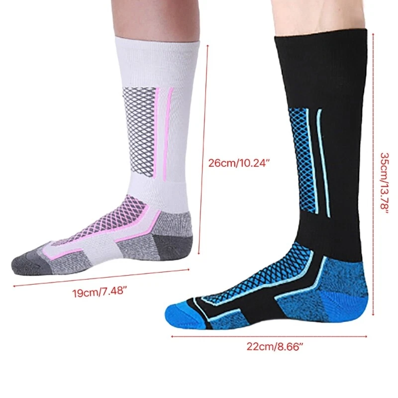 Ski Socks for Womens Mens with Full Cushion,Wool Winter Warm Socks for Skiing Features: Keep warm,our ski socks for women and men make from material,can keep your feet warm while skiing. the reinforced heel and toe of the skiing socks are designed for enhanced warmth. enjoy day skiing or snowboarding and no need to worry your toe feeling cold. Comfortable fit,the ski socks are of lightweight thickness, providing the perfects fit with your ski boot. the full cushion designs these warm socks for women and men can provide anti-blisters protections, reducing frictions from your ski boot and relieving foot from various outdoor sports. control,these winter socks have good wicking function, help quickly absorb and release sweat to keep your feet dry the whole day. and the ventilation mesh for added breathability while maintaining the feet natural temperature. High performances,these wool ski socks is very suitable for skiing, snowboarding, hiking, camping, mountaineering, cycling, ice skating, travelling, winter sports, outdoor activity and daily wear. Wonderful sweet warm friend family or yourself Specifications: Color:1,2,3,4 Size Size Male Sole:22cm(8.66inch) Male Tube Height:35cm(13.78inch) Male Width:10cm(3.94inch) Female Sole:22cm(8.66inch) Female Width:19cm(7.48inch) Female Tube Height:26cm(10.24inch) Package Includes: 1 Pair Thermal Knee High Warm Socks note: Please allow 1-2cm errors due to manual measurement. Due to the difference betweeen different monitors,the picture may not reflect the actual color of the item.