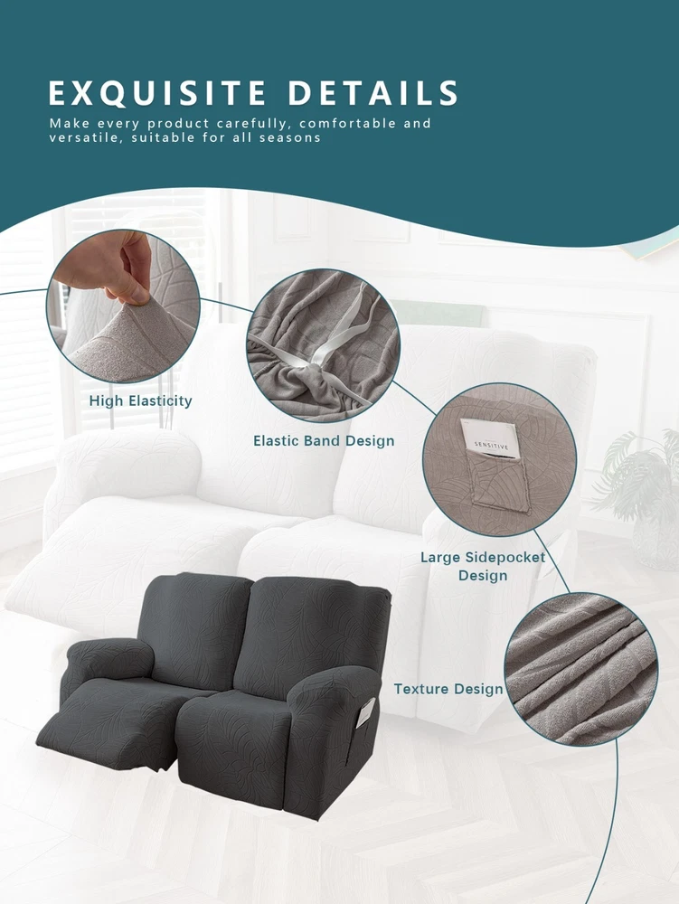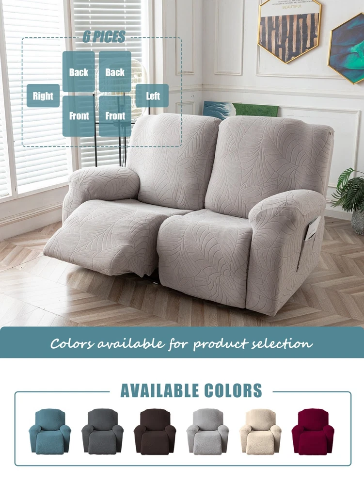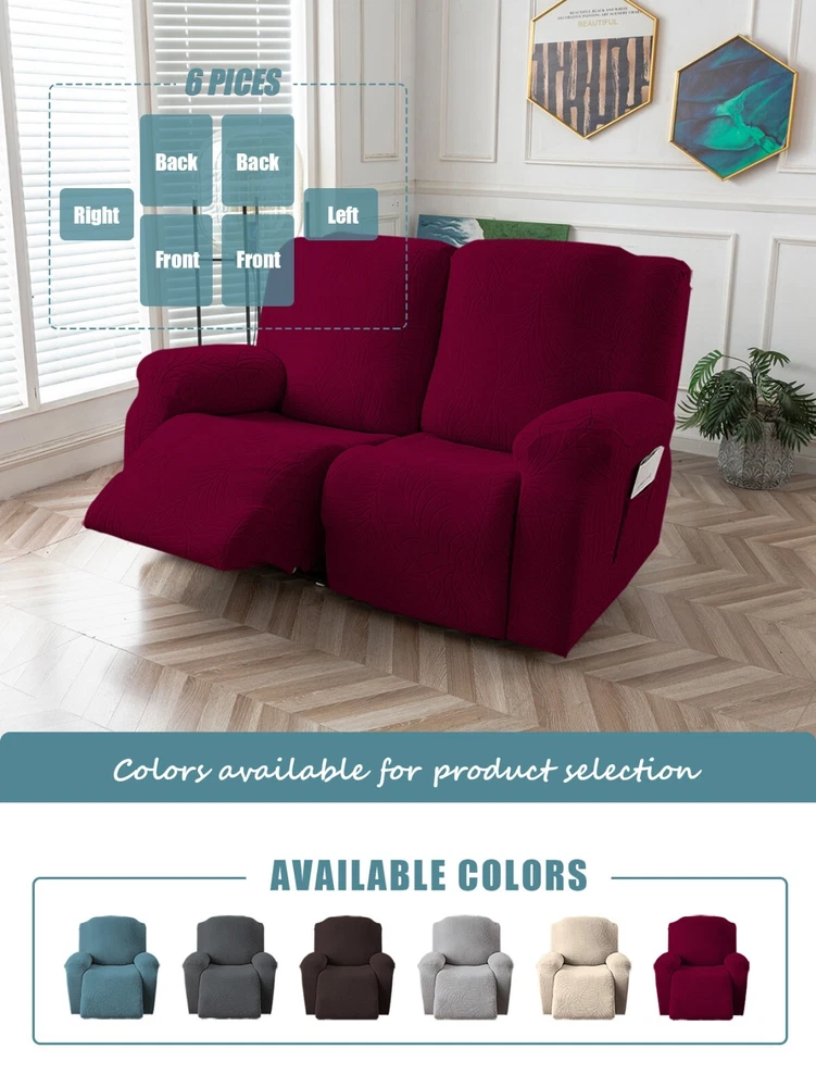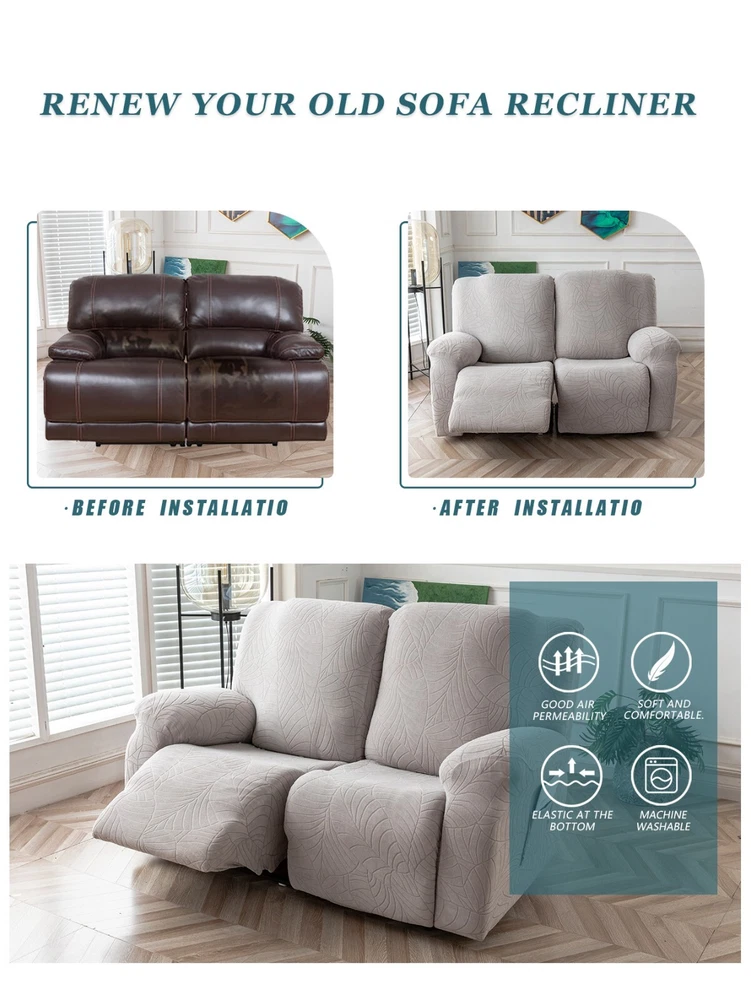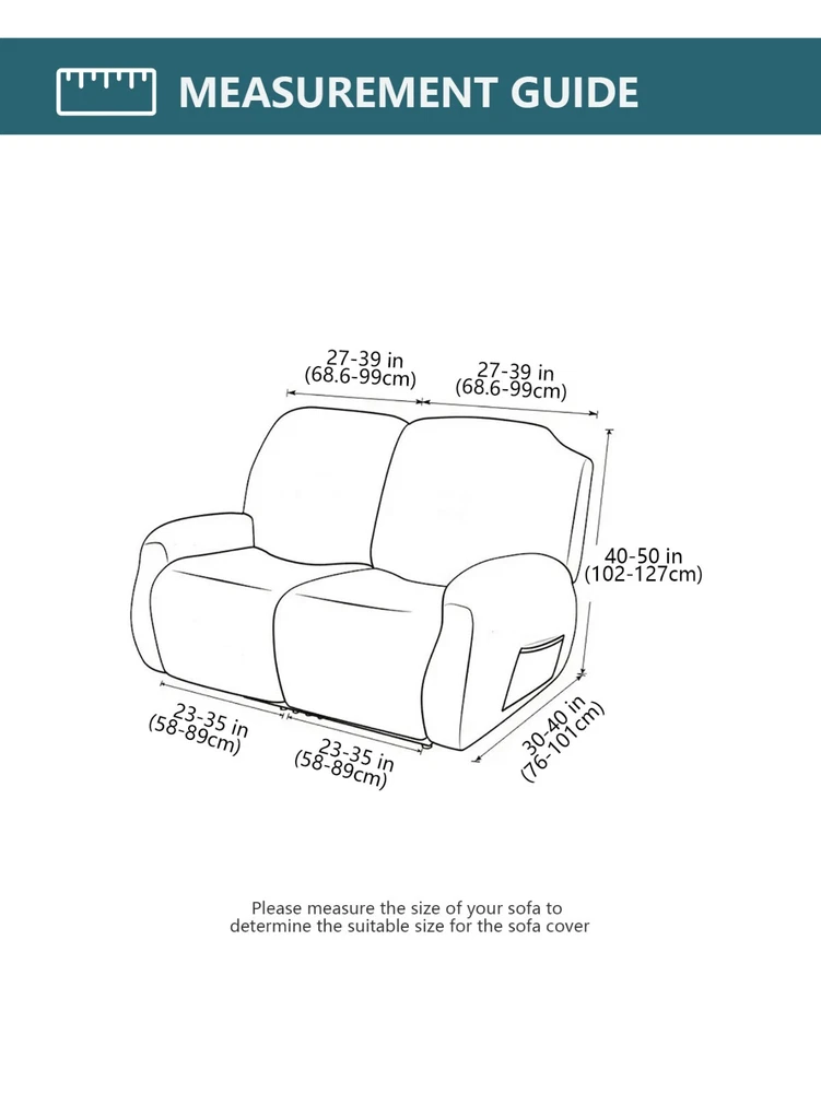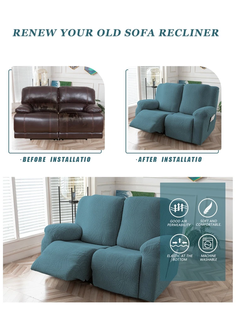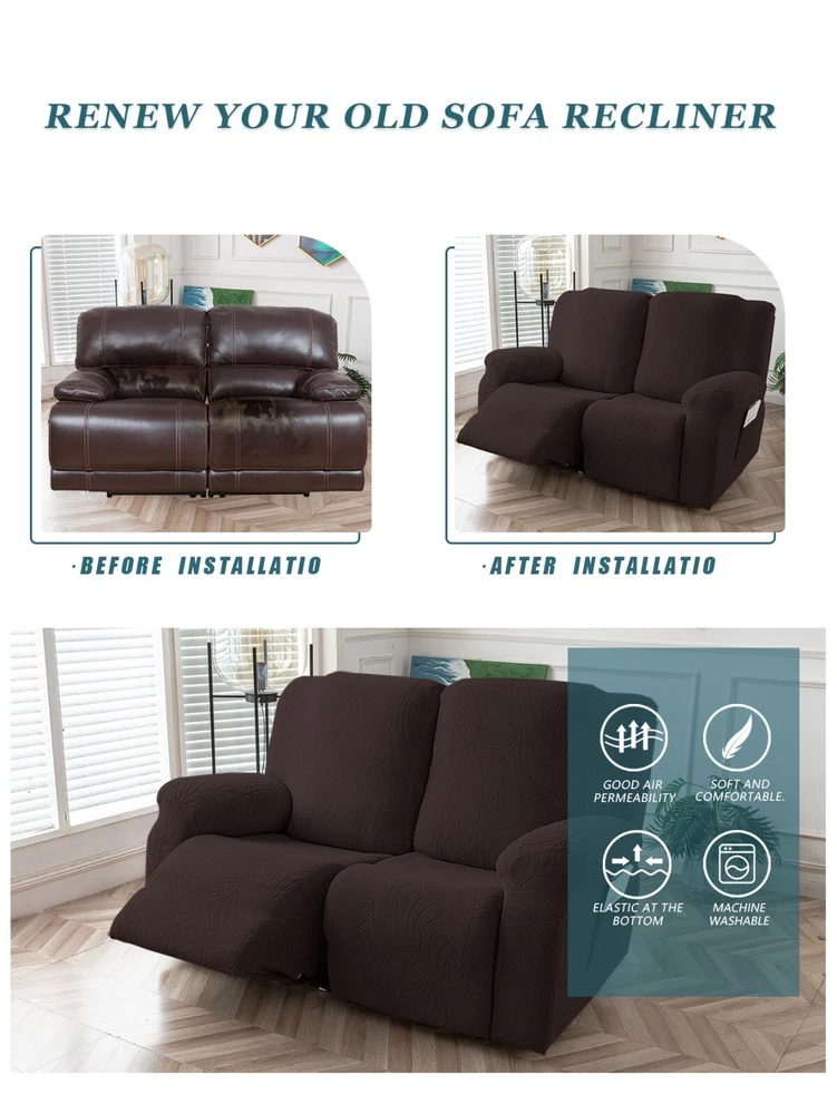 Great Quality Material: Recliner cover made of 88% polyester and 12% spandex jacquard fabric. The fabric is thick, highly elastic, and soft to the touch, providing excellent protection against stains, spills, scratches, and tears. The recliner chair couch cover gives your recliner sofa a luxurious and elegant new look. Fit Size:The slipcover has extra stretch that makes it suitable for most two-seater recliners, including regular recliners and those with consoles. The recliner slipcovers fits recliner that measure 48”-65” inches(center console not included). It's essential to follow the measurement guide details to confirm the size before purchasing. Easy to Install:This recliner cover is easy to install with the user manual provided. With its different colors, it's a quick and easy way to update the color or fabric of your existing furniture, making it a great and affordable way to redecorate on a budget. It's perfect for families with kids, pets, or worn-out couches. Thoughtful Design:The loveseat recliner cover is designed thoughtfully with two reclining chair covers and one center console cover, which can be purchased separately for convenient free combination. The cover stays in place with a bottom elastic strap, ensuring it doesn't move around. The pocket design on one side is also handy for placing your remote control, glasses, or any small items for easy access. Easy Care:This cover is easy to care for, protecting your furniture from accidental dirt such as water or dust. It maintains its fresh look after multiple washes and can be washed by hand or machine. The washing temperature is about 30 degrees Celsius, and mild detergent is recommended. It's important not to bleach or iron the cover.