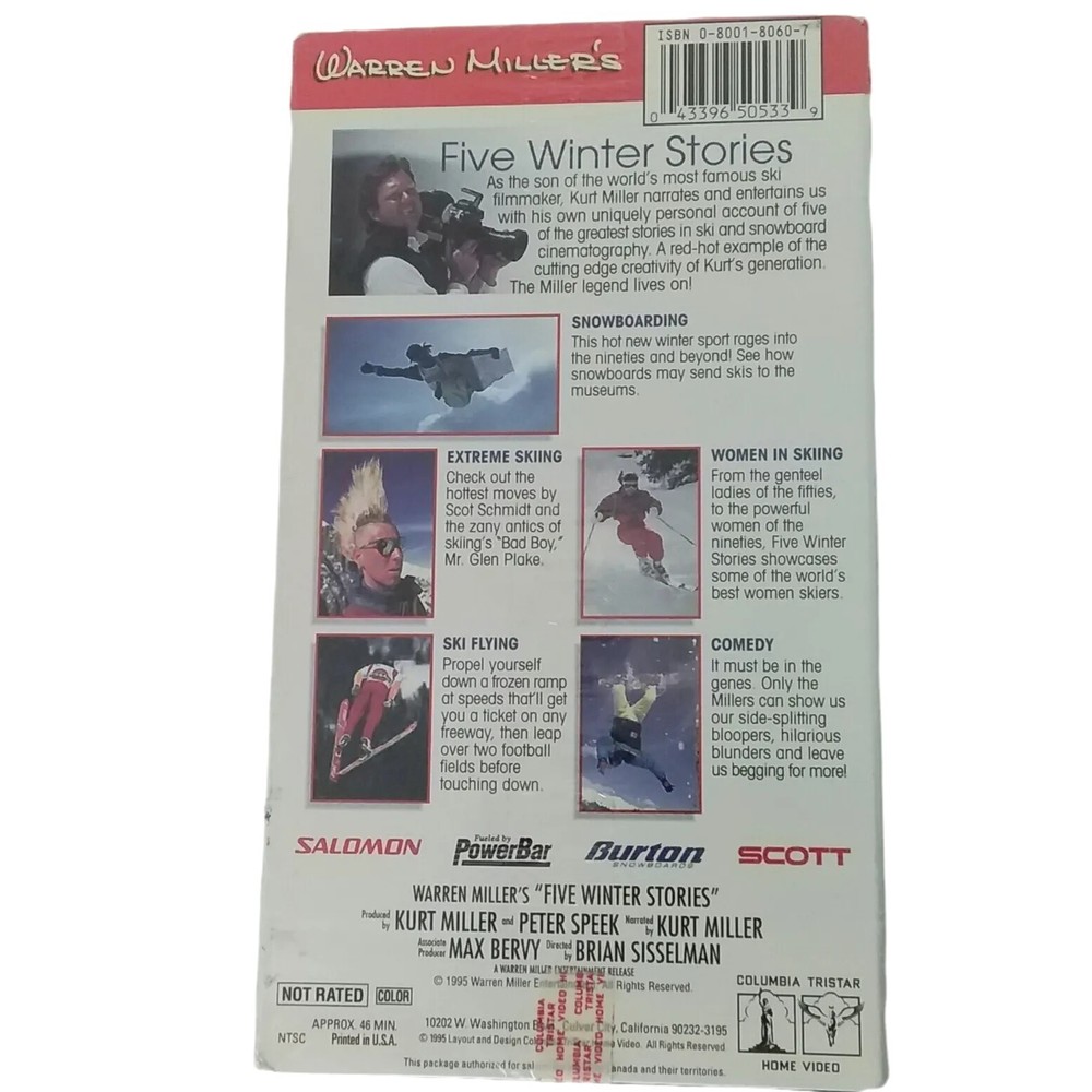 gtin13:Does not applyDirector:Brian SisselmanSub-Genre:SkiingFormer Rental:NoLanguage:EnglishActor:Kurt MillerSignal Standard:NTSCEdition:NAUPC:Does not applyStudio:Columbia TriStar Home EntertainmentGenre:SportsRating:NRMovie/TV Title:Warren Miller's Five Winter Stories