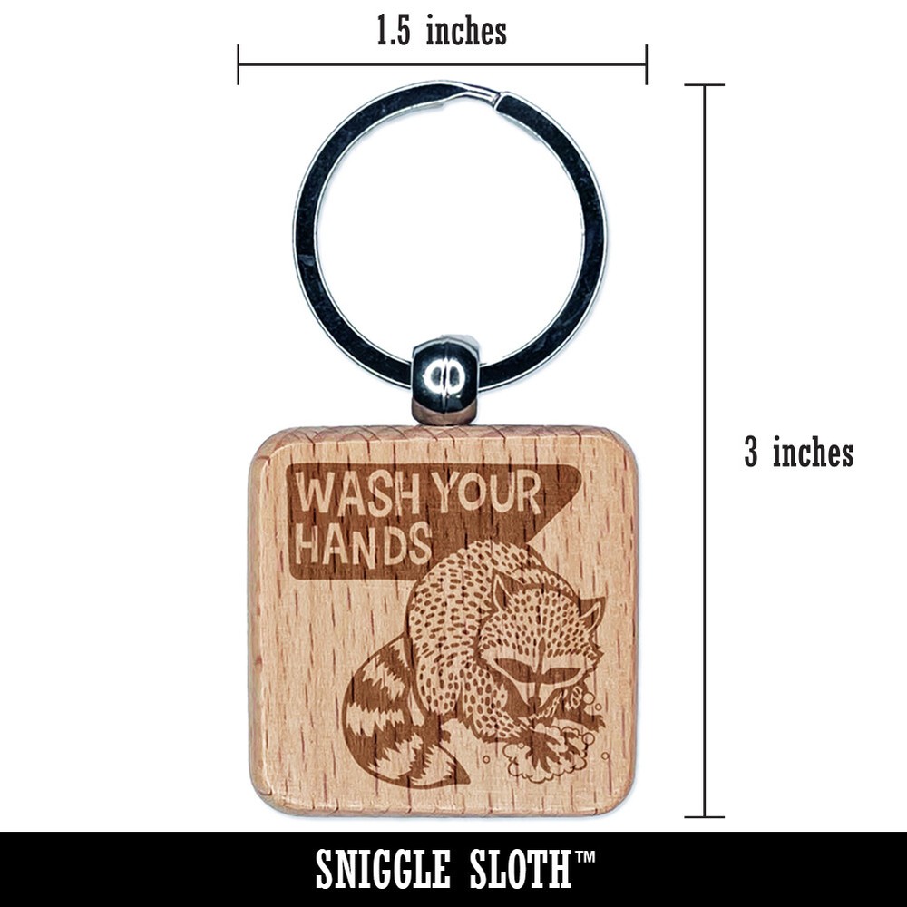 Wash Your Hands Raccoon Engraved Wooden Keychain Charm Tag