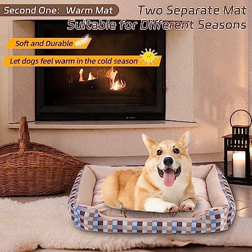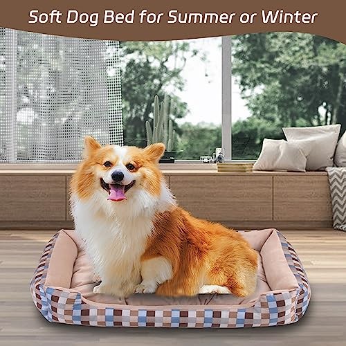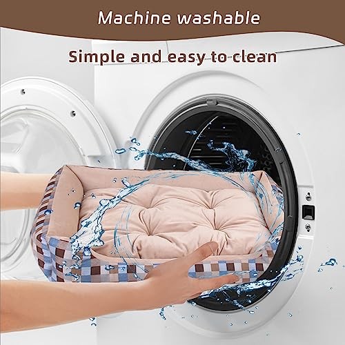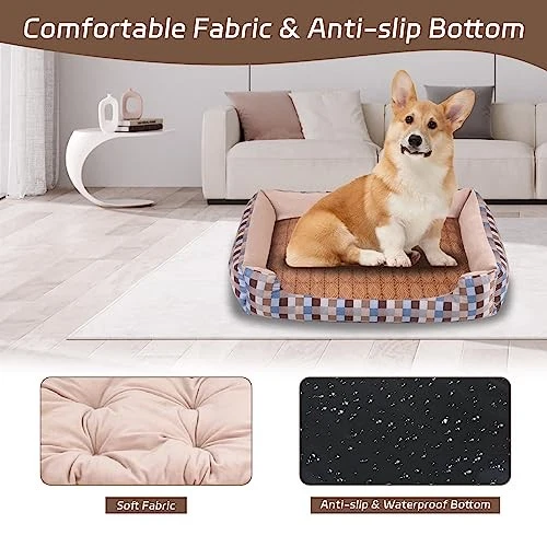 Washable Medium Khaki Dog Bed with Soft Comfort & Anti-Slip Bottom