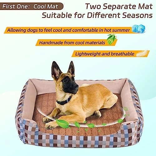30 Days Return Policy Fast Delivery Trusted seller Dog Beds for Medium Dogs Washable Dog Bed with Anti-Slip Bottom Soft Dog Creat Mat and Dog Cooling Mat for Puppy Small Medium Dogs (28 * 20 * 5.5 Inch, M, Khaki) Product Description 【Perfect for Winter & Summer】PETUFEY Puppy bed comes with two detachable dog pads, designed for hot and cold seasons. It can also be used as a dog mat alone or placed in a dog crate. Very easy cleaning. Friendly companionship with dogs every season. 【High Quality & Durable】The dog beds itself is made of high-quality cotton and soft short fluff fabric, providing warmth and comfort. The summer mat is made of polyester, which is cool and breathable. 【Edge Pillow Design】We specially designed pillow edge around the dog bed. It can easily lift the head and neck of the dog, providing them with the most perfect support and making their dreams more beautiful. 【Anti-slip and Waterproof Bottom】The bottom of this dog bed is made of anti slip and waterproof fabric. Even if t is water on the ground, t is no need to worry about getting the dog's bedding wet. 【Package Including】dog bed, soft mat, summer mat,Compression Bag.If you have any questions after receiving the product, please do not hesitate to contact our customer service. We will definitely provide you with the best solution. Shipping Returns Payment Shipping Shipping is FREE to all addresses other than APO/PO boxes in the lower 48 states. All our stock ships from US-based warehouses. Shipped via USPS or UPS (depending on location and package weight) Unless stated otherwise, all orders will ship within 24-72 hours of your payment being processed. Check our feedback to see the great reviews of FAST shipping we offer. Returns As our valued customer, we will do our best to make sure the product you receive arrives to you on time and as expected. If you are not satisfied with your purchase, please contact us within 30 days of receiving your order to process a return. Payment We currently accept payment via eBay managed payments only. Once payment is cleared, we will dispatch your shipment within 1-3 business days. Please refer to the "Shipping" tab for more information regarding shipping speed to your destination.