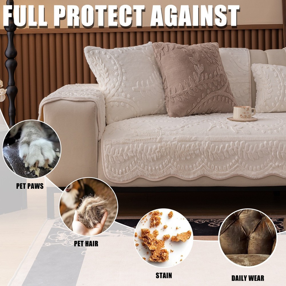 Anti-slip pet sofa cover: Our pet-friendly plush pet sofa cover features an anti-slip particle design on the back to prevent sliding or movement Comfortable sofa pet cover: The dog sofa cover is soft and comfortable. This pet sofa cover is exquisitely crafted from thickened, scratch-resistant fabric, which can prevent pet scratches and general wear and tear, ensuring your furniture is protected and looks simple and unadorned. Multi-functional sofa cover: Our pet sofa cover has multiple uses. It can not only be used as a sofa protective cover, but also as a multi-functional window pad, bedside pad, floor pad and carpet. This sofa protective cover can be used all year round. 【 Durable Dog Sofa Cover 】 This sofa cover is made of high-quality materials, does not fade, does not pill, and can be used for a long time. This dog sofa cover is perfect for protecting your furniture from pet hair, dust and accidental spills, keeping your sofa clean and tidy. Easy to care for: This sofa cover, suitable for 3 cushions, is machine washable. You just need to throw it into the washing machine and do a deep clean