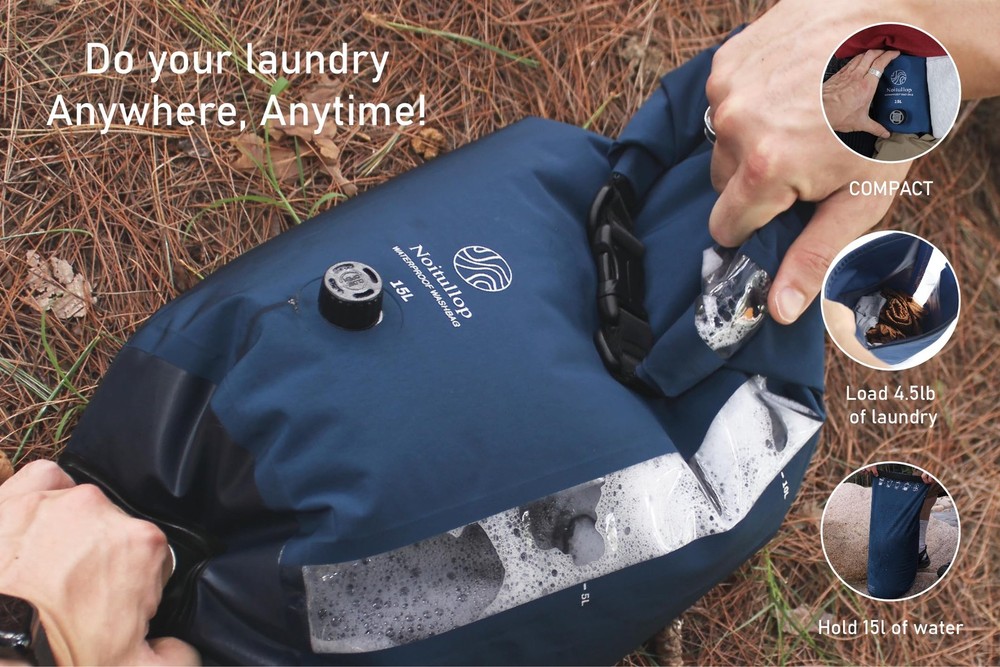 Introducing the Washbag, a portable and compact washing machine that allows you to do laundry on-the-go. With a spacious 15L capacity, this fully waterproof dry bag is perfect for travel, camping, or any outdoor adventure. Lightweight and easy to use, this manual clothes washer lets you wash your clothes effortlessly without the need for electricity or a traditional washing machine. Simply add water, detergent, and your clothes, then agitate the bag to clean your garments. The durable construction ensures long-lasting use, making it an ideal solution for keeping your clothes fresh and clean wherever your journey takes you. Upgrade your travel experience with the Washbag and never worry about dirty laundry again. Portable Washing Machine: This lightweight, compact 15L dry bag doubles as a manual washing machine for travel, camping, or swimming. Waterproof Design: Fully waterproof construction allows for easy hand-washing of clothes on the go. Durable Construction: Rugged materials ensure long-lasting use, even in demanding outdoor conditions. Space-Saving: The compact size makes it easy to pack and transport this portable washer. Versatile: In addition to washing clothes, this bag can be used for general storage and organization.