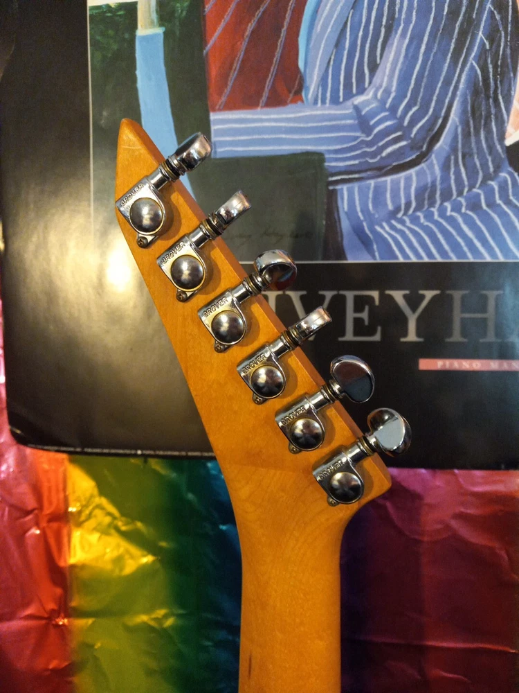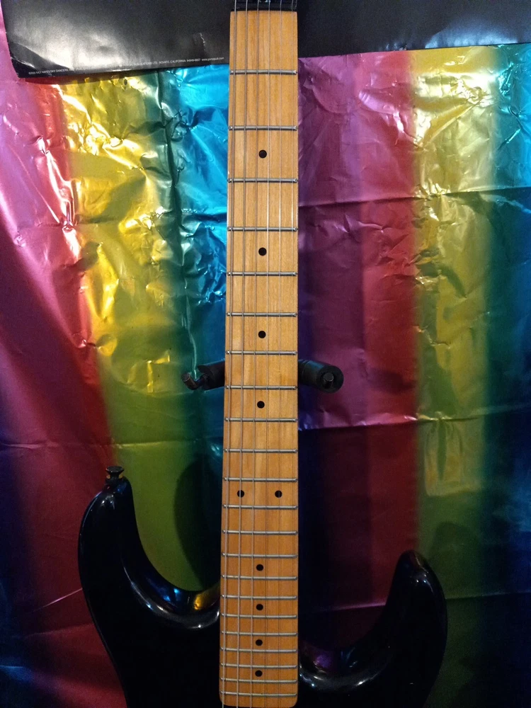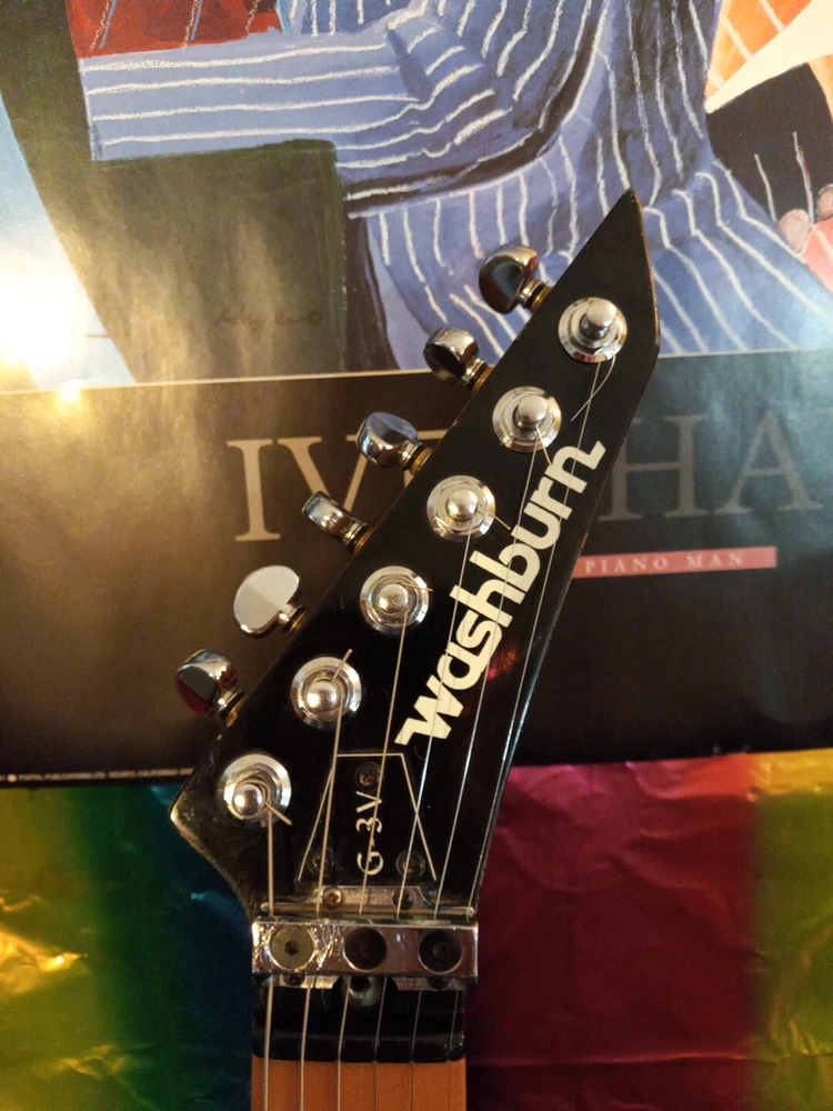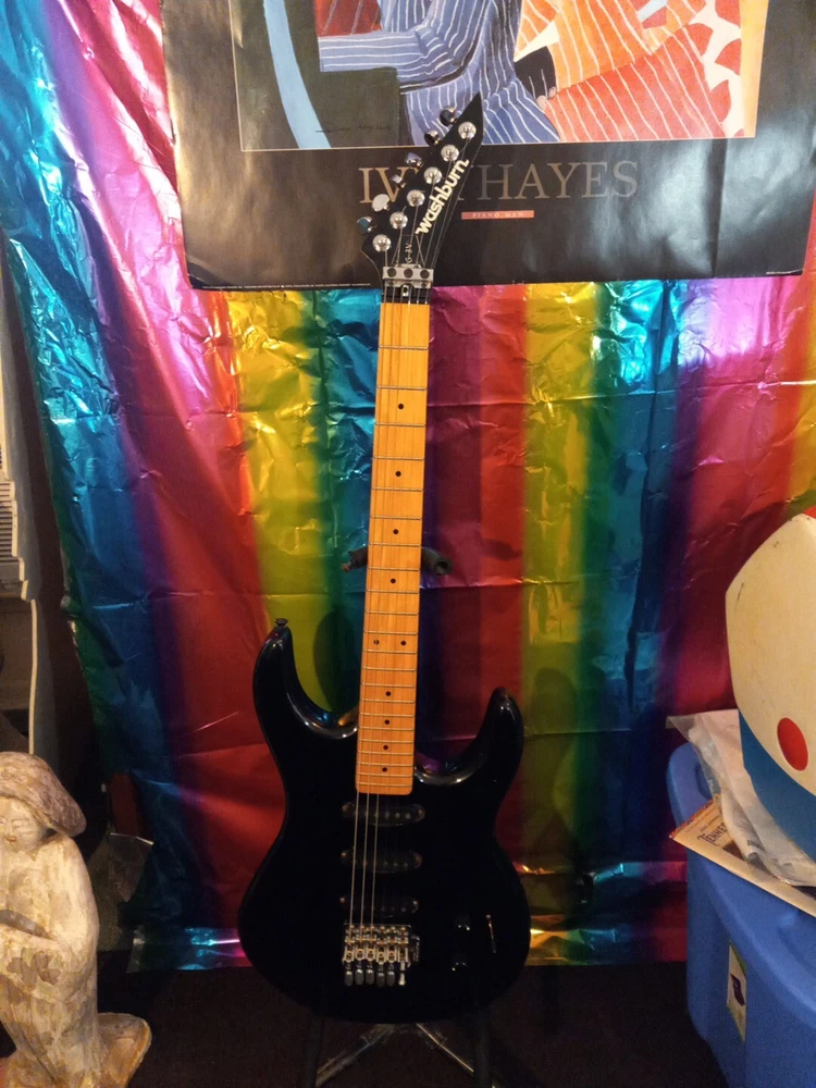 This Washburn G3v electric guitar super strat Please examine photos in gallery to best judge cosmetic condition of guitar. Some stickers were removed Some scuffs and marks throughout guitar not visible in photos. Probably a heavily gigged guitar although I was able to string it up with Slinky 8s and get it tuned. It has a floyd rose tremelo missing the tremelo arm 😢 All electronics are functional with no static in potentiometers or switch It is a vintage gem from the 80s with a black mahogany body and bolt-on neck. Its double cutaway design and offset waist provide a unique playing experience that is sure to satisfy any guitar enthusiast. The brand, Washburn, is known for producing high-quality instruments, and this model is no exception. The guitar's body material and color are the perfect combination for a stylish instrument. The Washburn G3v is a great choice for anyone looking for a high-quality electric guitar that can handle any musical genre. This guitar is perfect for musicians who want to elevate their playing and stand out from the crowd. offset double cutaway mahogany body, bolt-on Canadian rock maple neck, 22-fret maple fingerboard with dot inlays, pointy headstock with six-on-one-side tuners, Fine Tune Washburn tremolo with locking nut, three single coil pickups, two knobs, five-way switch, chrome hardware, available in various finishes, mfg. 1987-88. Please ask for more photos or information if needed Thank you, Anthony