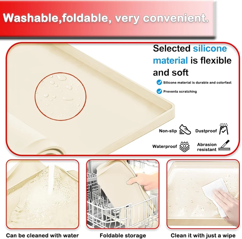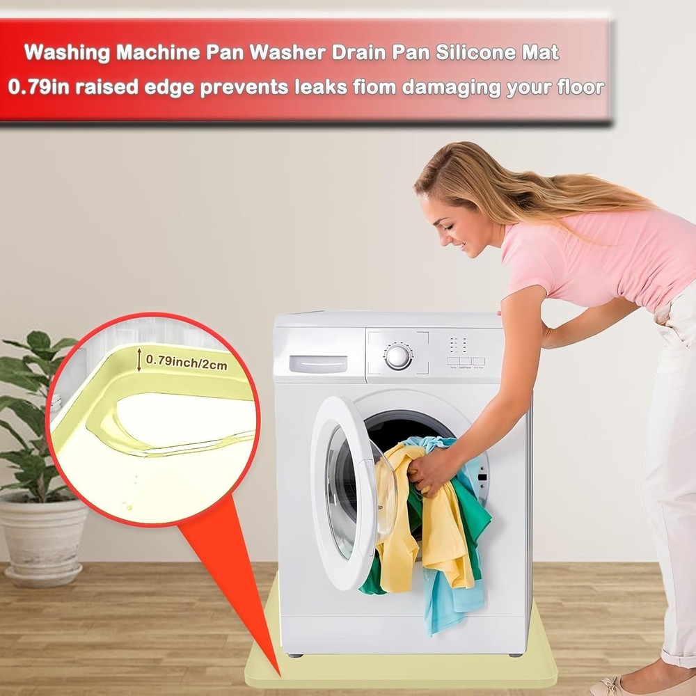 High Quality Silicone: Our Washing machine silicone pad mat has good flexibility, can be folded and rubbed at will for easy storage. Silicone material is heat-resistant, even in high temperature conditions can ensure intact. it can fit perfectly on the bottom of the washing machine, and can also be used as a storage tray for various items Anti-Slip and Leak-Proof: Portable washing machine mat is designed with high edges all around 0.79inch/2cm, which can hold a large amount of water, preventing leakage or overflow, preventing dirt from leaking out, which can effectively protect the floor or cabinet Anti-Vibration & Non-Slip Design: The washing machine mat is a non-slip and waterproof backing, prevents water or other liquids from flowing on the floor. Our silicone washing machine tray absorbs vibrations and reduces noise during operation. Its non-slip bottom prevents washer movement and protects floors from scratches and damage Widely used: This mat Ideal as the bottom of washing machine, refrigerators, dishwashers, dryers, wine cabinet, juicer coffee machine, or other household appliances, they can also be used in bedrooms, kitchens, living rooms, offices, bars and entertainment venues Easy to clean: Clean up easily by rinsing, or simply wipe down the mat with a wet cloth. Dries up quickly and is dishwasher safe, The size of our silicone mat is 27''x27''. Please be sure to measure the size of washing machine before purchasing to ensure it fits The Washer Drain Pan is a versatile and practical accessory for your kitchen. Made of silicone and measuring 27x27 inches, this non-slip drip tray is perfect for catching spills and drips from your electric washer. The glossy white finish adds a sleek look to your countertop, while the included components make it easy to set up and use. Designed for maximum convenience, this multi-function tray is a must-have for any home chef looking to keep their kitchen clean and tidy.