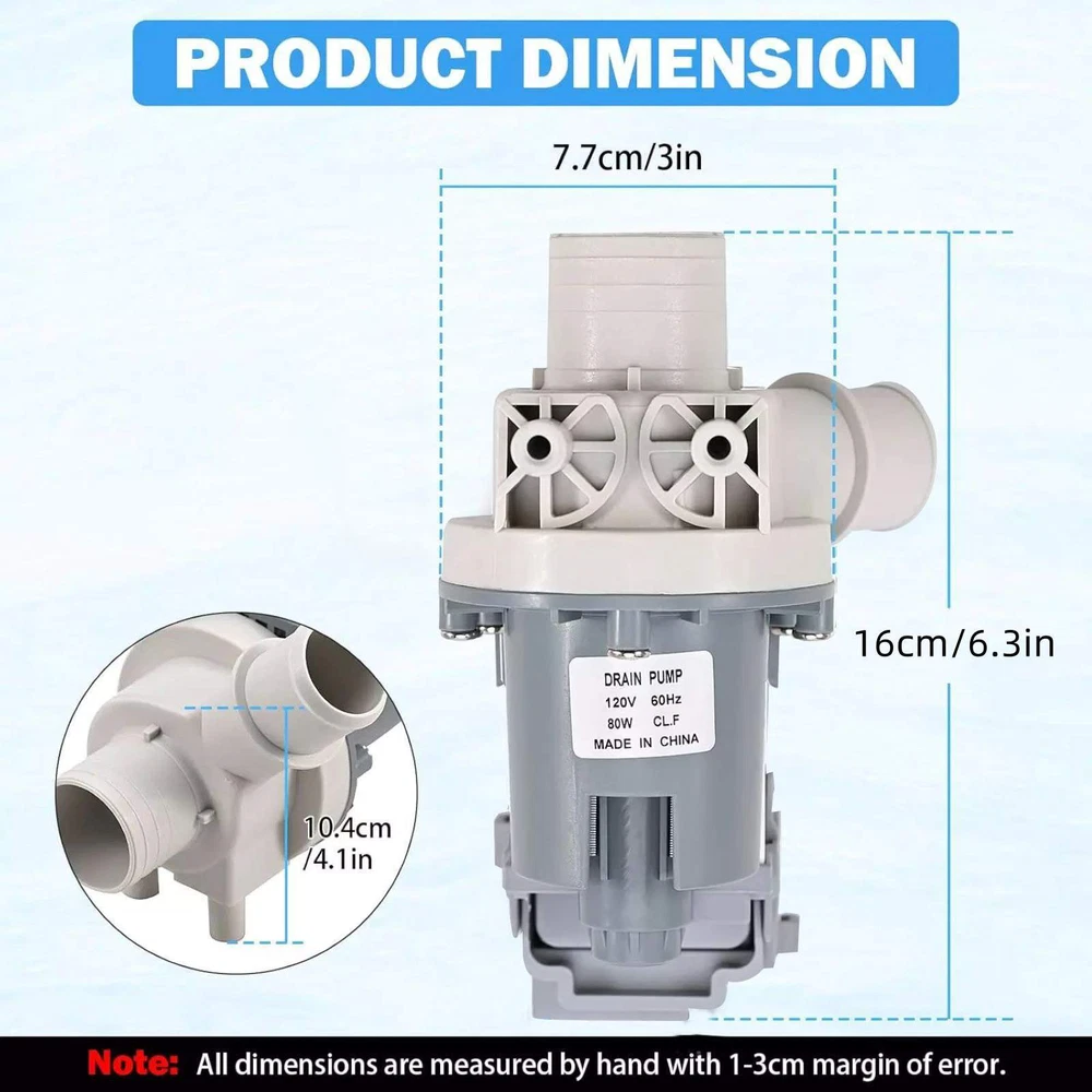 Product Description Washer Drain Pump Assembly for Kenmore 4681EA1007A Replacement WT1201CW Features: Perfect fit: Replace old or damaged drainage pump components directly, ensuring an exact match to the original equipment, and quickly restore the original drainage efficiency and performance of the washer without any additional modifications or adjustments. High-quality materials: The selection of high-quality materials and advanced processes to ensure that the motor has excellent wear resistance, corrosion resistance, and long-term stable operation in wet and detergent environment. Long life design: After rigorous testing and verification, to ensure that the component has a long service life, reduce the failure rate, reduce maintenance and replacement costs, bring you a more economical use experience. Quick installation: Users can easily replace the drainage pump components, without complex tools or professional skills, and enjoy convenient DIY fun. Specifications: OEM Part Number: DP040-012 Voltage: AC120V Power: 80W Frequency: 60Hz Replacement Part Number: 4681EA1007A, 2649379, AP5672914, PS7785119, EAP7785119 Compatible Brands: For LG, for Kenmore Compatible Models: WT1001CW, WT1201CV, WT1201CW, WT4870CW, WT1501CW, WT5270CW, 79631513210, 79629278000, 79629002000, 79629002010, 79629272000, 79629272010, etc. Package Included: 1pcs Drain Pump Assembly If you have any questions, please feel free to contact us via ebay. We usually respond within 24 hours. Payment Shipping Returns Contact Us We accept all verified payments from ebay. Orders will be shipped after receiving cleared payment. Payment due within 7 days after auction ends and for buy it now listings. We ship most of our orders within 24 hours, and may up to 48 hours for. If you want faster shipping way. Please contact us before making payment. Sometimes due to problems with our transportation company system, your shipping information may be delayed to update. We recommend that you try again after 3-4 days. If you still haven't checked the shipping information, you can contact us by ebay message. Always believe we can figure things out with communication, if it comes to return, the pacakge must be intact and the same as you receive. If you have any questions, please feel free to email our service specialists 24 Hours a Day, 7 Days a Week. We will reply you ASAP. Return/refund is accepted within 30 days after the buyer receives the item. NO exchange will be accepted after 30 days from the date when the item is received. Please contact us first before returning your product!!! If you have any questions, our Customer Service staffs welcome you to email us. We strive to answer all questions and resolve any problems as quickly as possible. You can contact us 7*24, we will reply at the first time, and we will surely solve your problems. Note: 1.We try our best to reply to your emails as soon as possible, however, due to high volume of daily incoming emails and time zone difference, we may not be able to reply your emails immediately. Please allow 1 business days for us to response. If you do not receive any reply from us, please check your email ensuring your mailbox has not reached full size. 2.Due to some ISP SPAM filter settings, you may not be able to receive our replies; if you have problems receiving our emails, you may need to use a different email account to contact us. 3.Please give us the opportunity to resolve any problem. We understand the concerns and frustrations you might have, and will try our best to resolve the issues. Please email us before leaving any negative feedback or open any dispute on PayPal. 4.We care about our valued customers, and will always try to help you. So if you have any problems, please e-mail us immediately. Payment We accept all verified payments from ebay. Orders will be shipped after receiving cleared payment. Payment due within 7 days after auction ends and for buy it now listings. Shipping We ship most of our orders within 24 hours, and may up to 48 hours for. If you want faster shipping way. Please contact us before making payment. Sometimes due to problems with our transportation company system, your shipping information may be delayed to update. We recommend that you try again after 3-4 days. If you still haven't checked the shipping information, you can contact us by ebay message. Returns Always believe we can figure things out with communication, if it comes to return, the pacakge must be intact and the same as you receive. If you have any questions, please feel free to email our service specialists 24 Hours a Day, 7 Days a Week. We will reply you ASAP. Return/refund is accepted within 30 days after the buyer receives the item. NO exchange will be accepted after 30 days from the date when the item is received. Please contact us first before returning your product!!! Contact Us If you have any questions, our Customer Service staffs welcome you to email us. We strive to answer all questions and resolve any problems as quickly as possible. You can contact us 7*24, we will reply at the first time, and we will surely solve your problems. Note: 1.We try our best to reply to your emails as soon as possible, however, due to high volume of daily incoming emails and time zone difference, we may not be able to reply your emails immediately. Please allow 1 business days for us to response. If you do not receive any reply from us, please check your email ensuring your mailbox has not reached full size. 2.Due to some ISP SPAM filter settings, you may not be able to receive our replies; if you have problems receiving our emails, you may need to use a different email account to contact us. 3.Please give us the opportunity to resolve any problem. We understand the concerns and frustrations you might have, and will try our best to resolve the issues. Please email us before leaving any negative feedback or open any dispute on PayPal. 4.We care about our valued customers, and will always try to help you. So